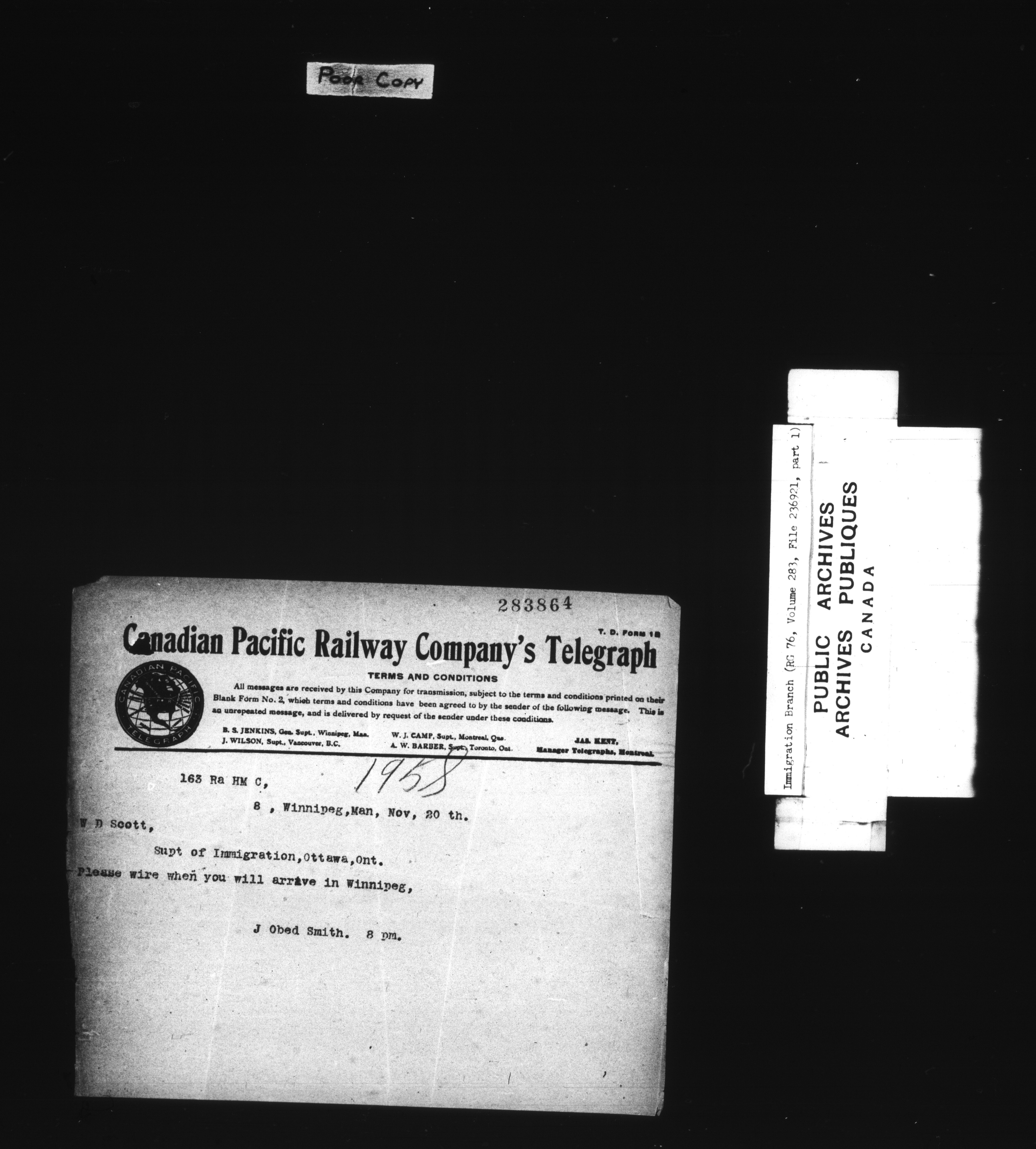 Subject, policy and case files in the First Central Registry series of the Immigration Program, 1892-1950 - 7831