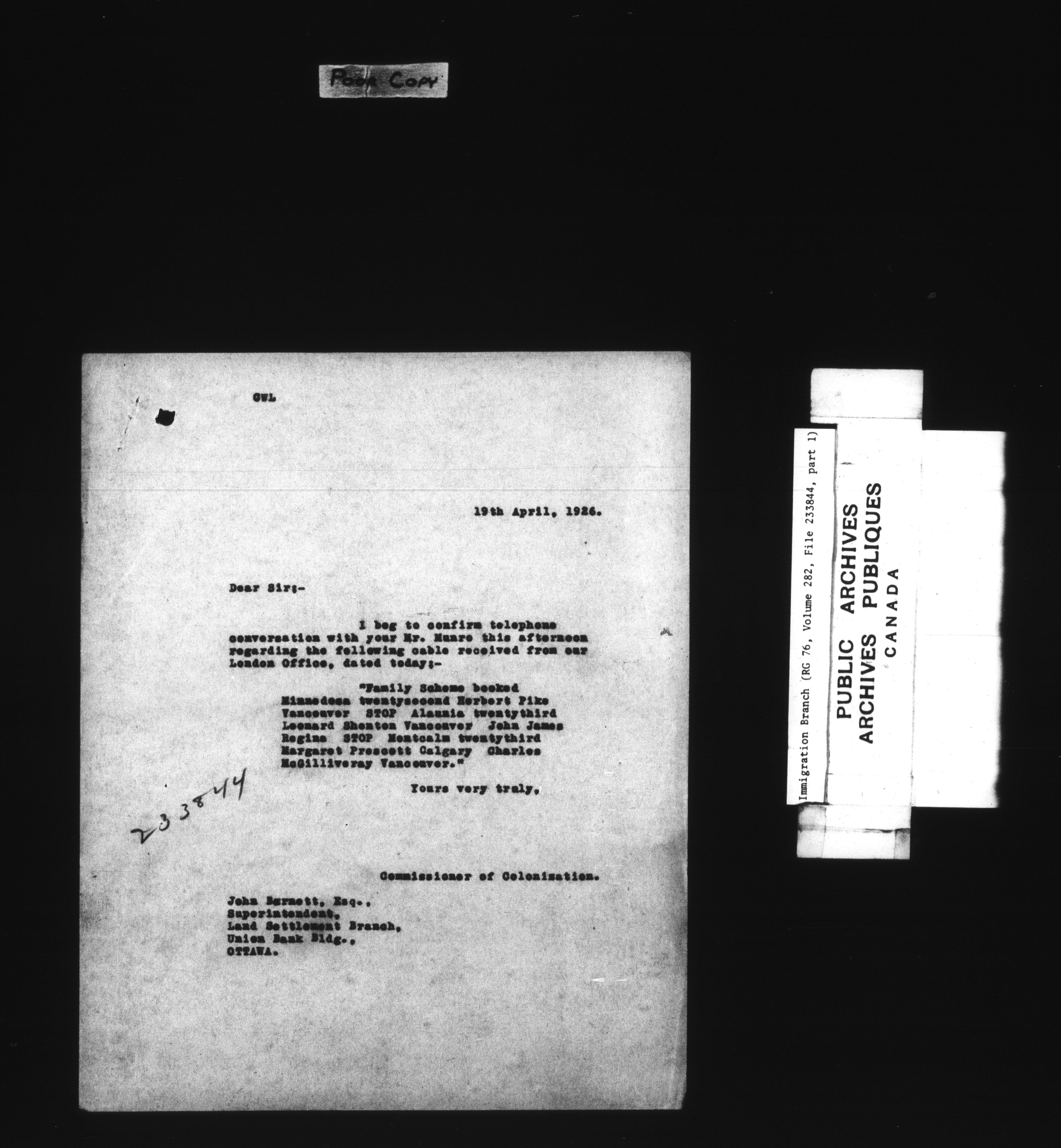 Subject, policy and case files in the First Central Registry series of the Immigration Program, 1892-1950 - 7831