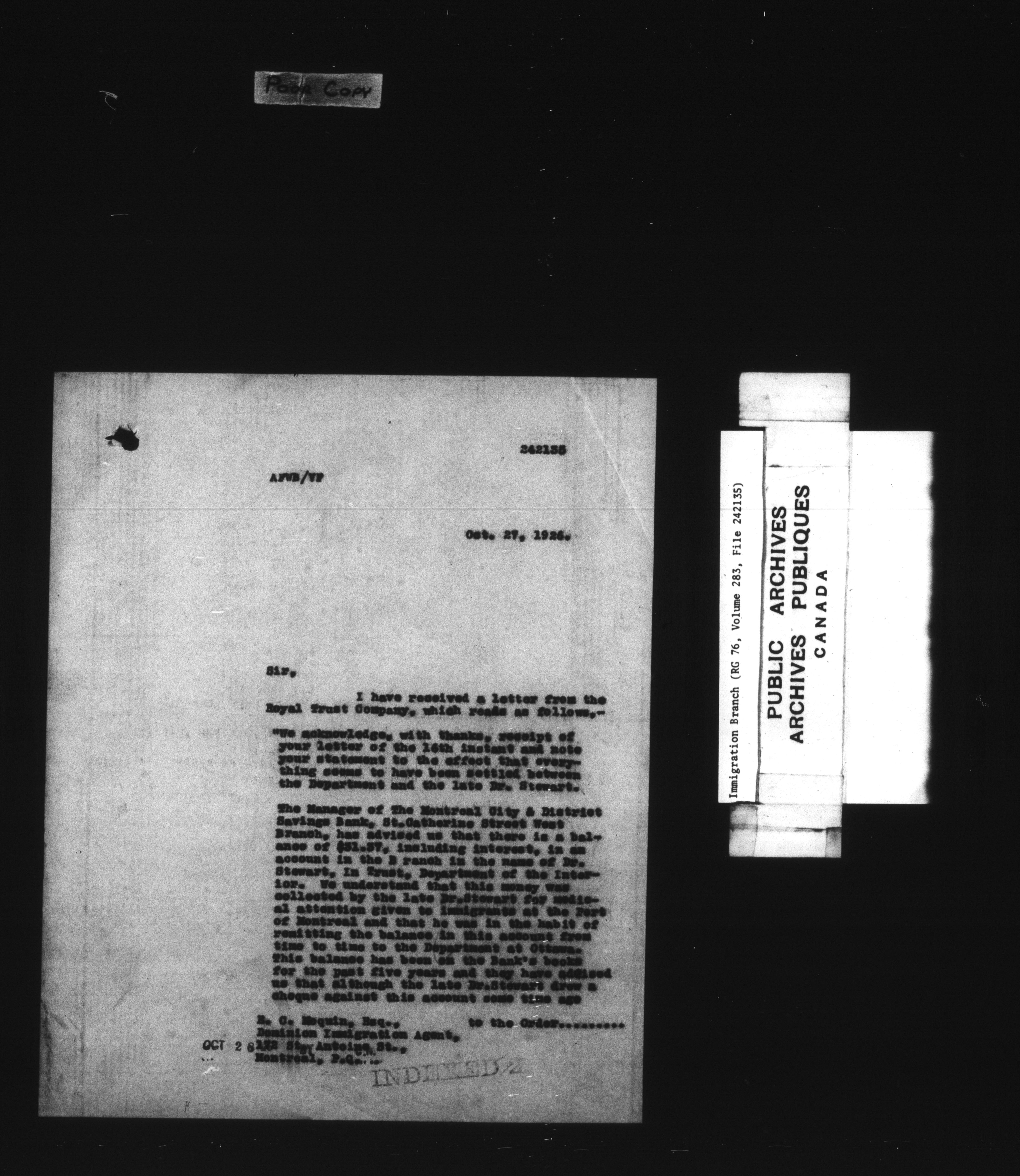 Subject, policy and case files in the First Central Registry series of the Immigration Program, 1892-1950 - 7832