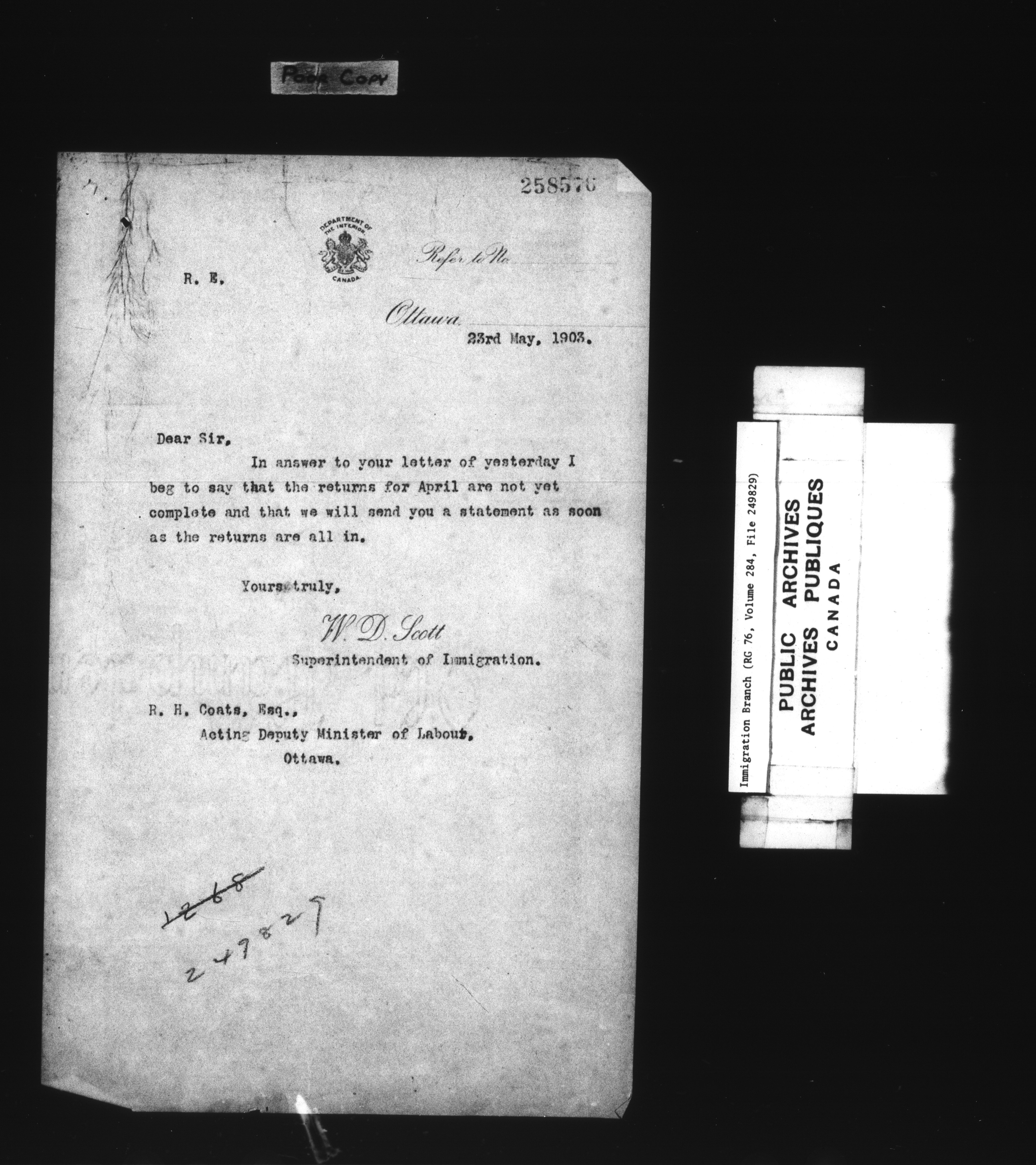 Subject, policy and case files in the First Central Registry series of the Immigration Program, 1892-1950 - 7833