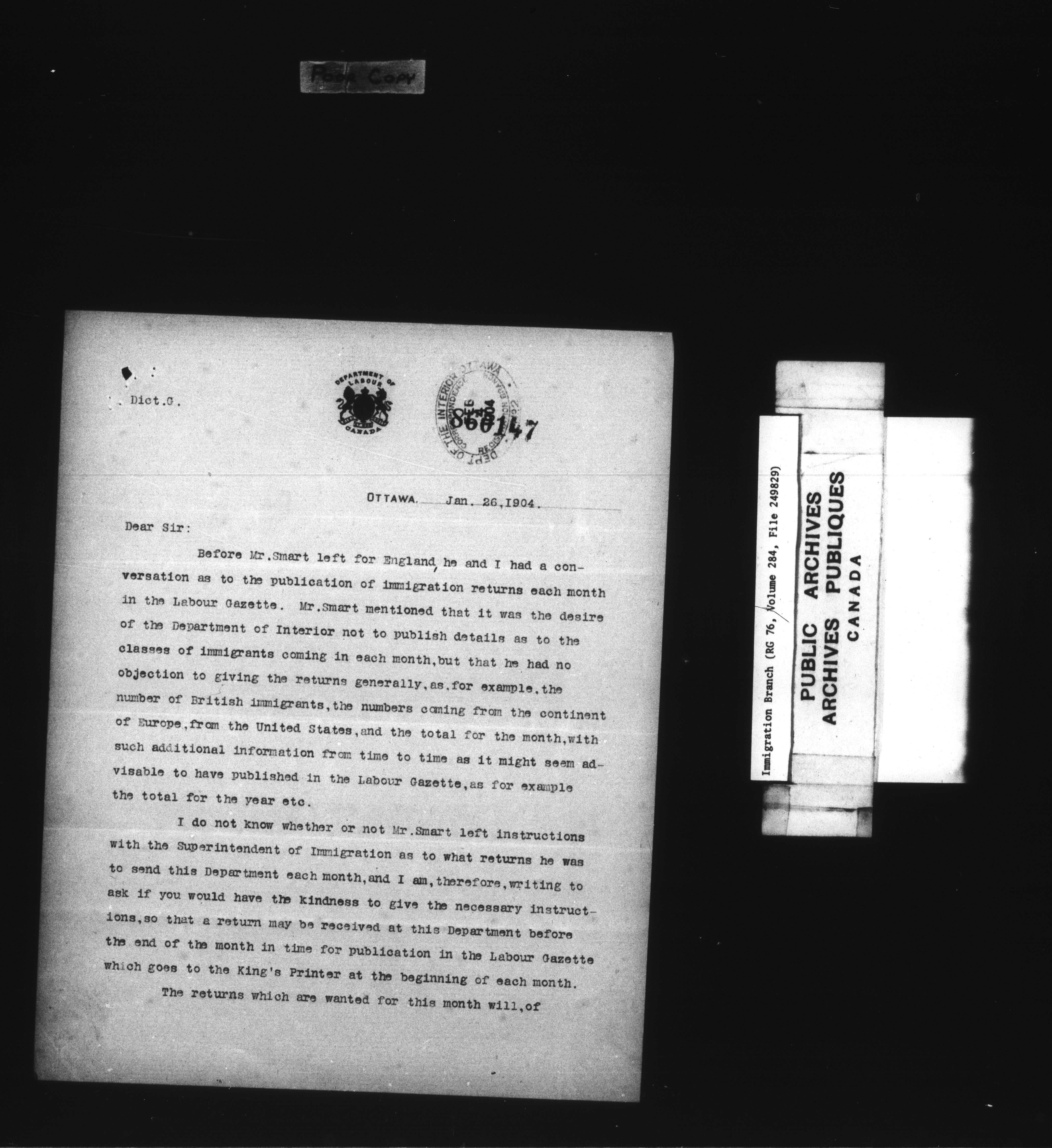 Subject, policy and case files in the First Central Registry series of the Immigration Program, 1892-1950 - 7833