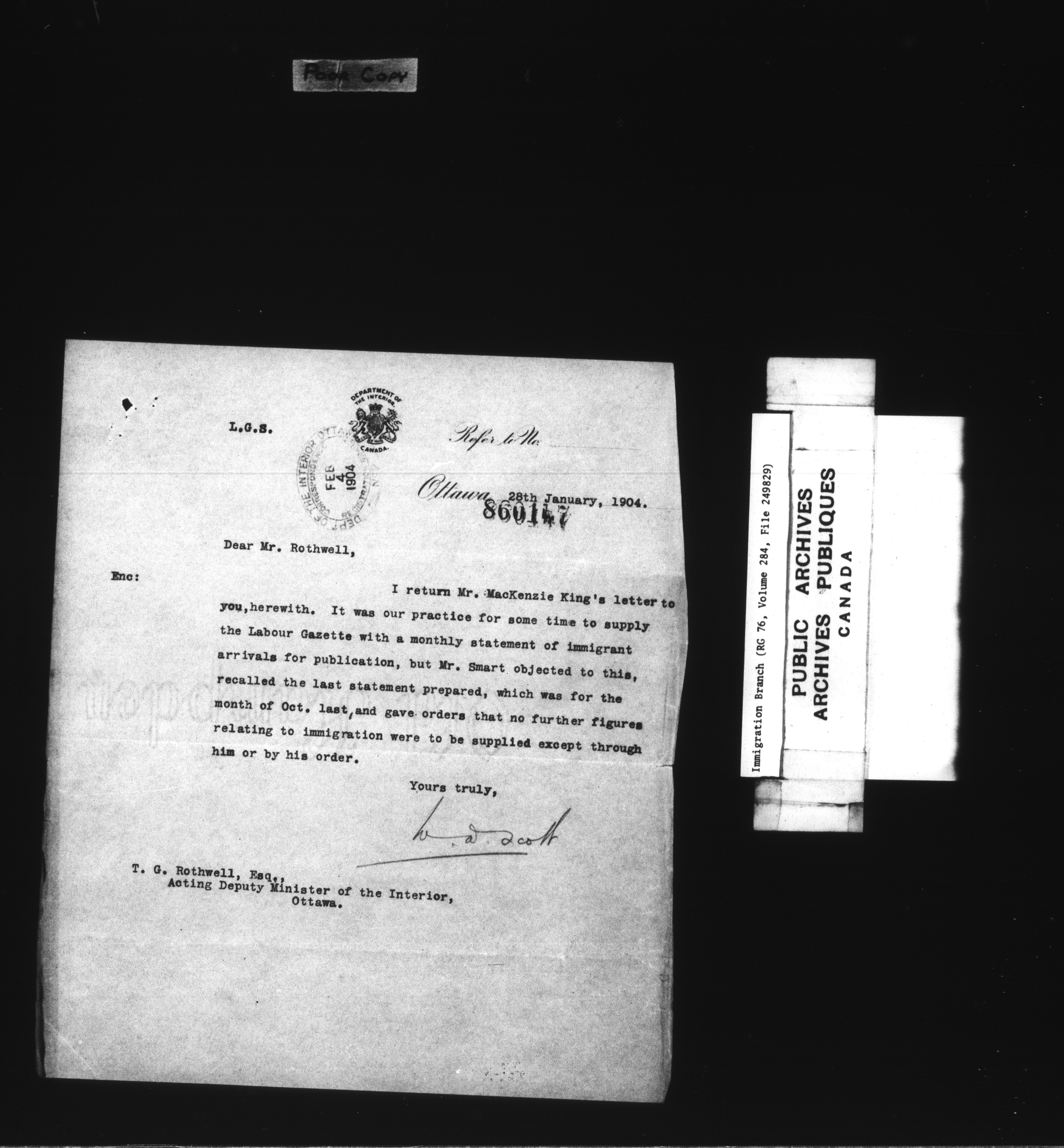 Subject, policy and case files in the First Central Registry series of the Immigration Program, 1892-1950 - 7833