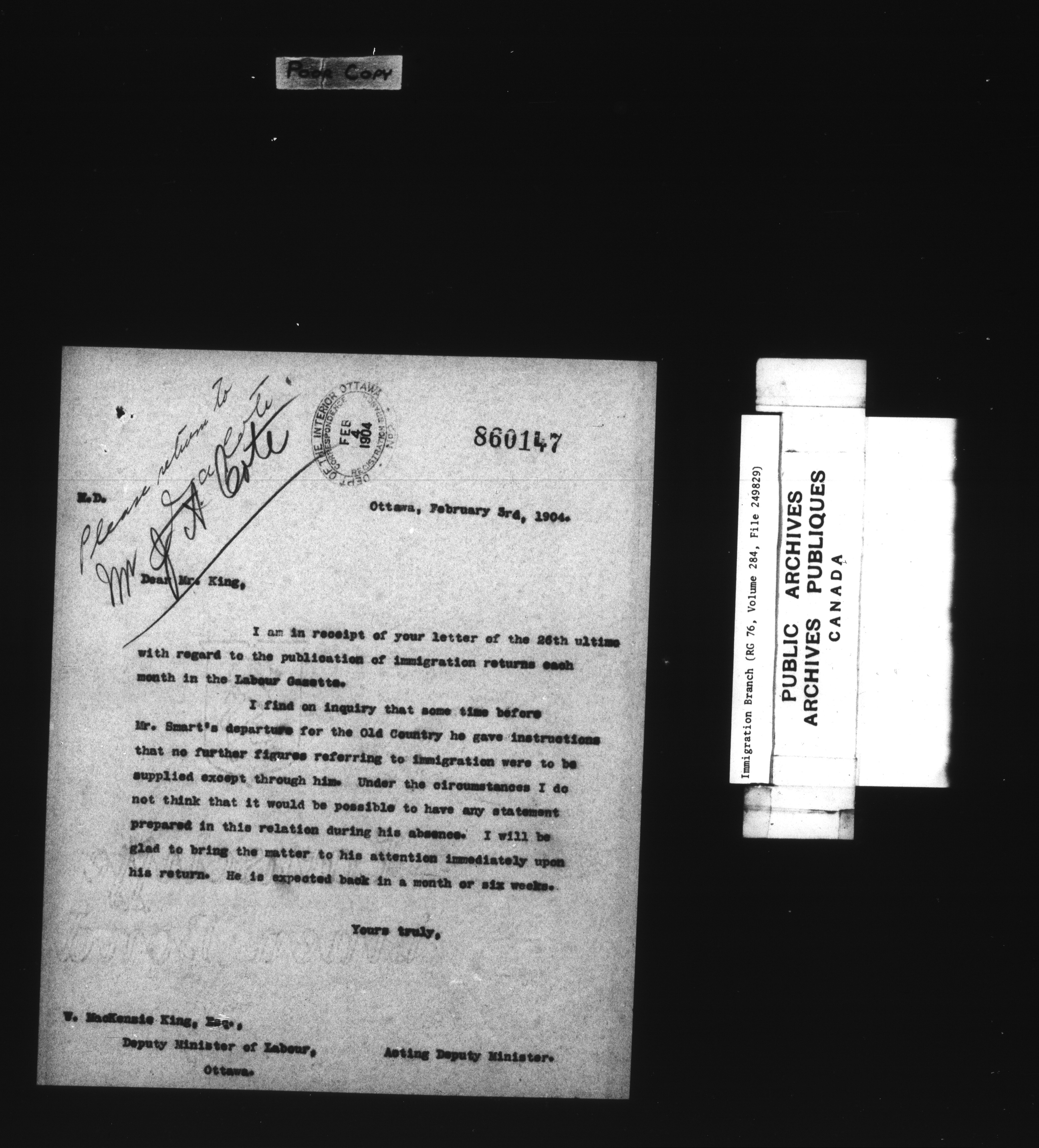 Subject, policy and case files in the First Central Registry series of the Immigration Program, 1892-1950 - 7833