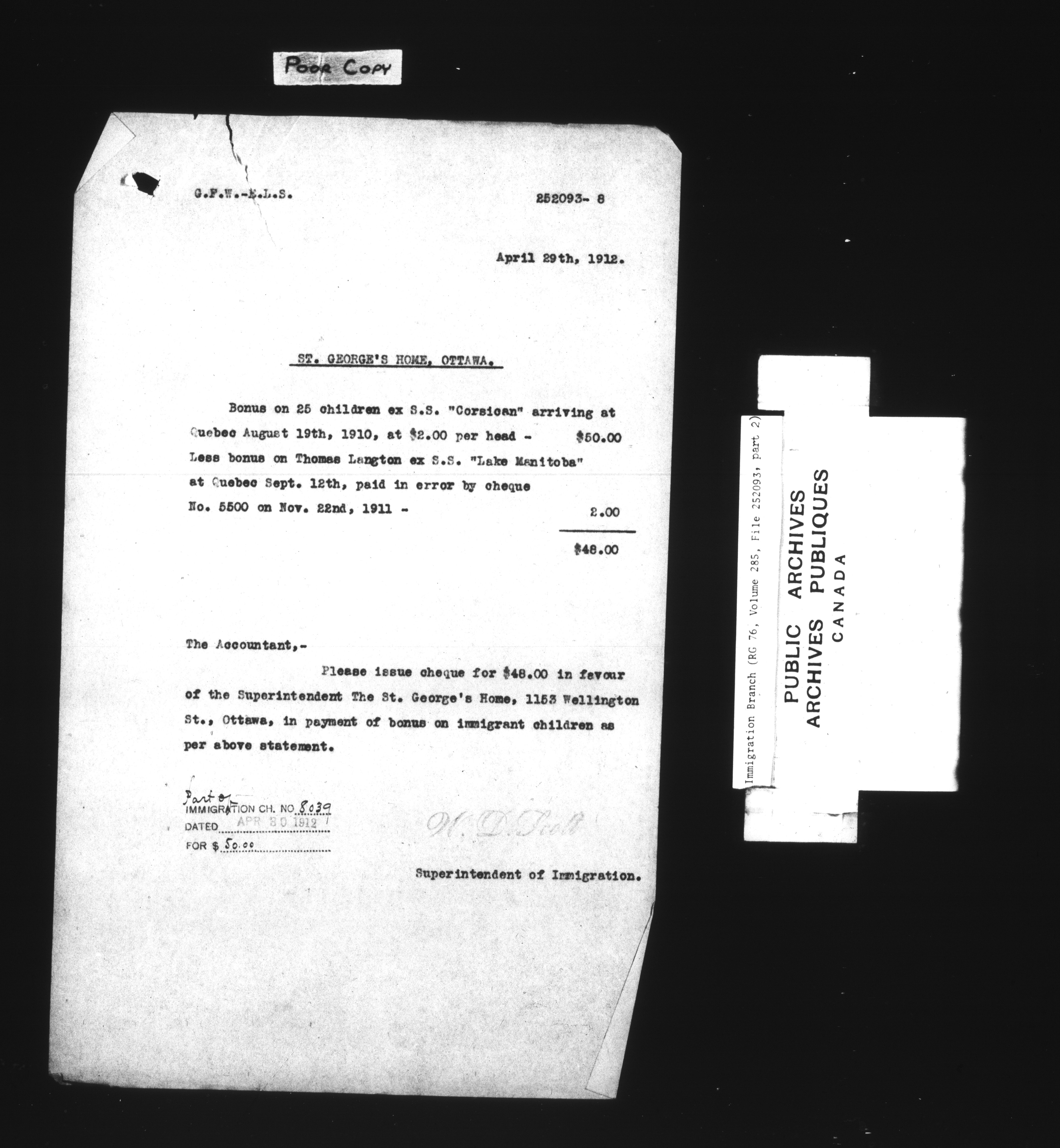 Subject, policy and case files in the First Central Registry series of the Immigration Program, 1892-1950 - 7834