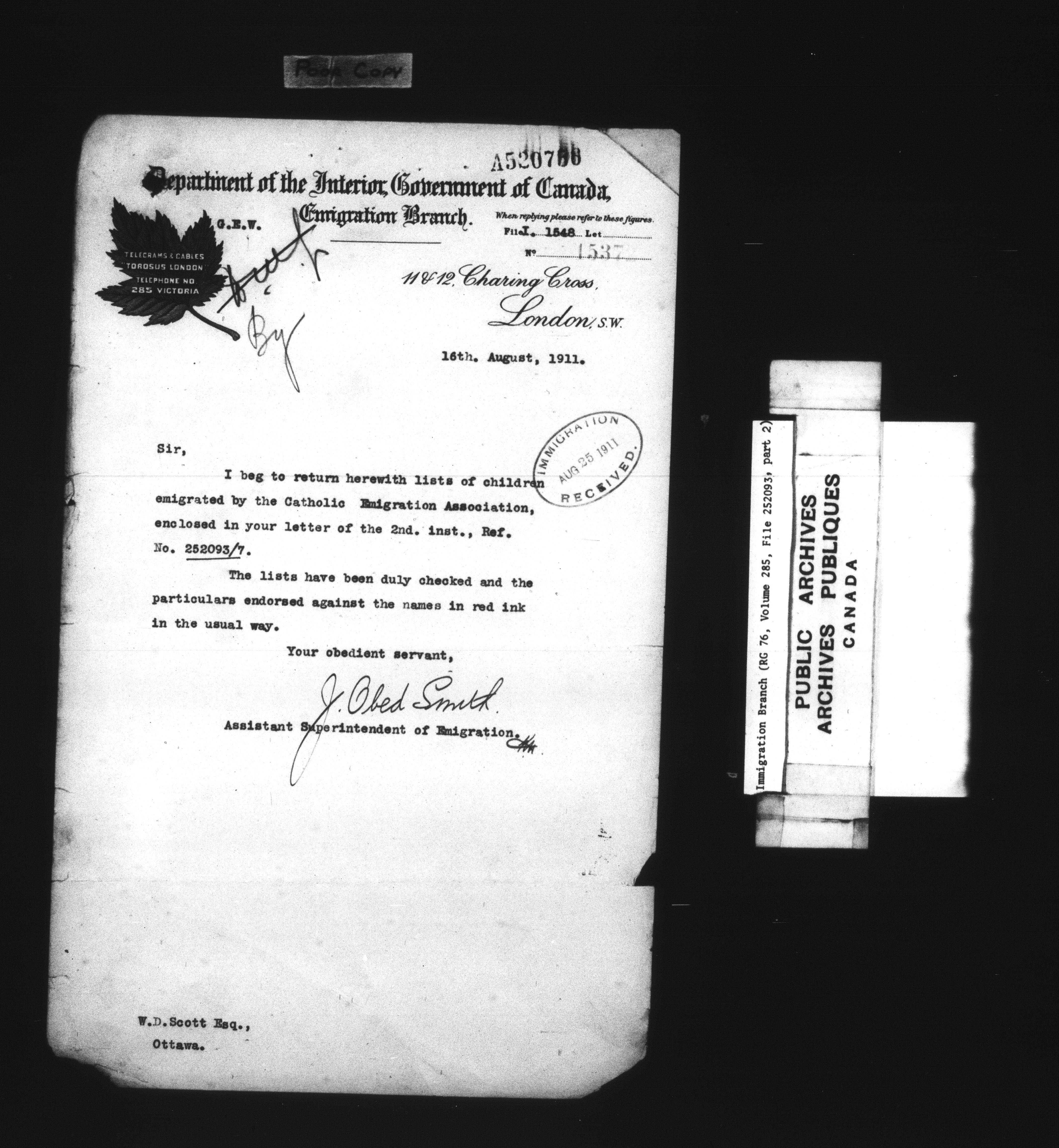 Subject, policy and case files in the First Central Registry series of the Immigration Program, 1892-1950 - 7834