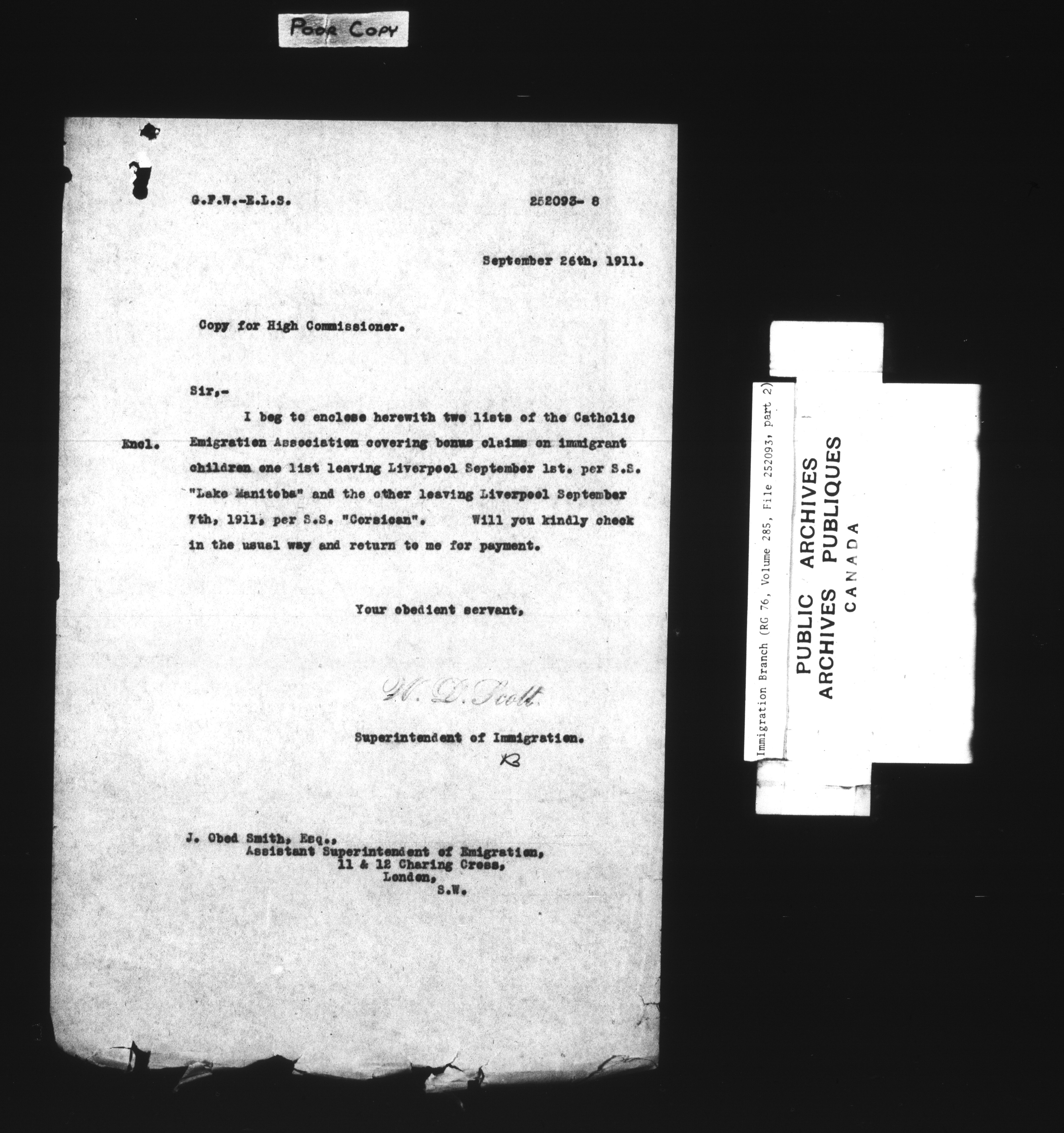 Subject, policy and case files in the First Central Registry series of the Immigration Program, 1892-1950 - 7834