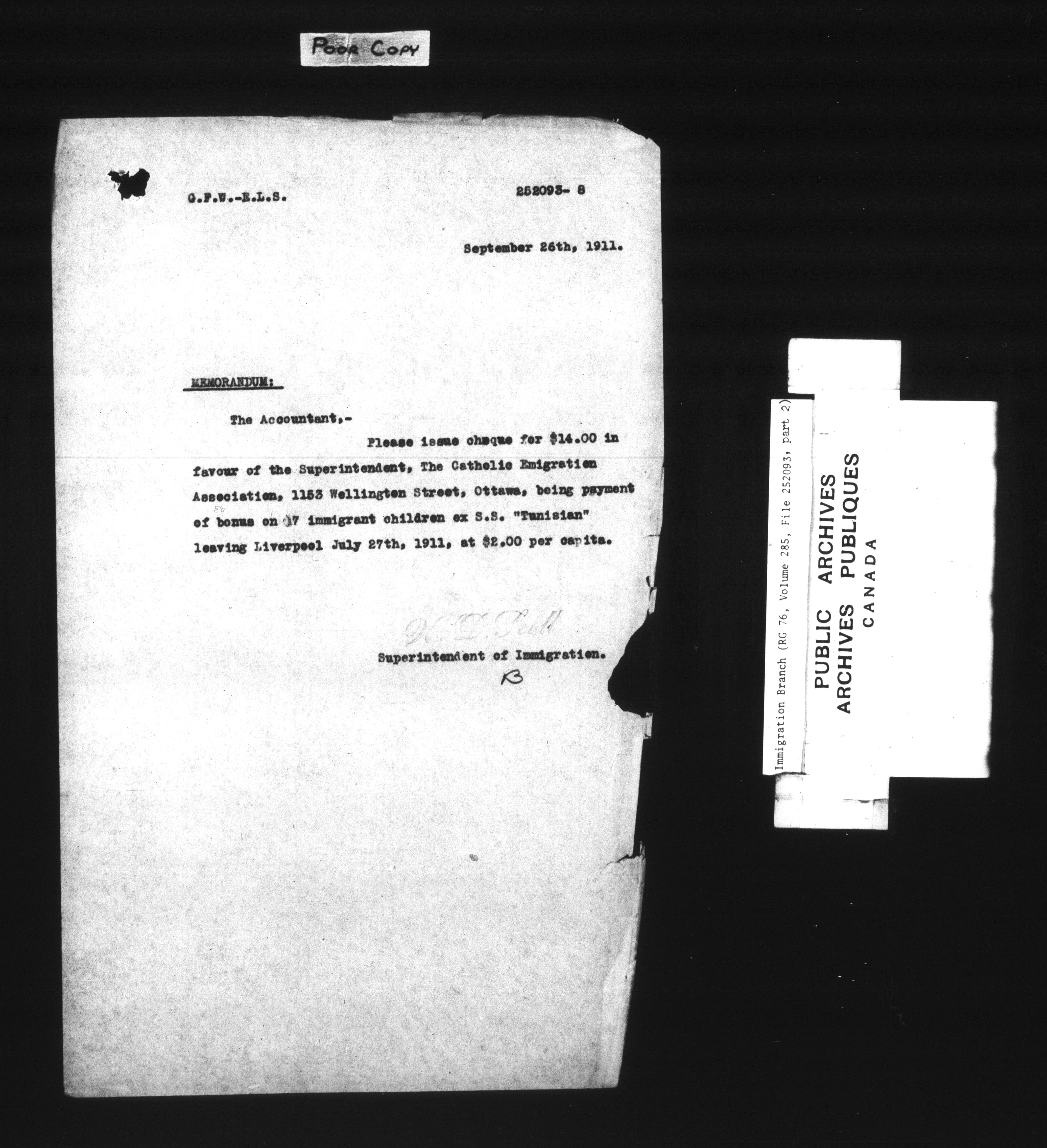 Subject, policy and case files in the First Central Registry series of the Immigration Program, 1892-1950 - 7834