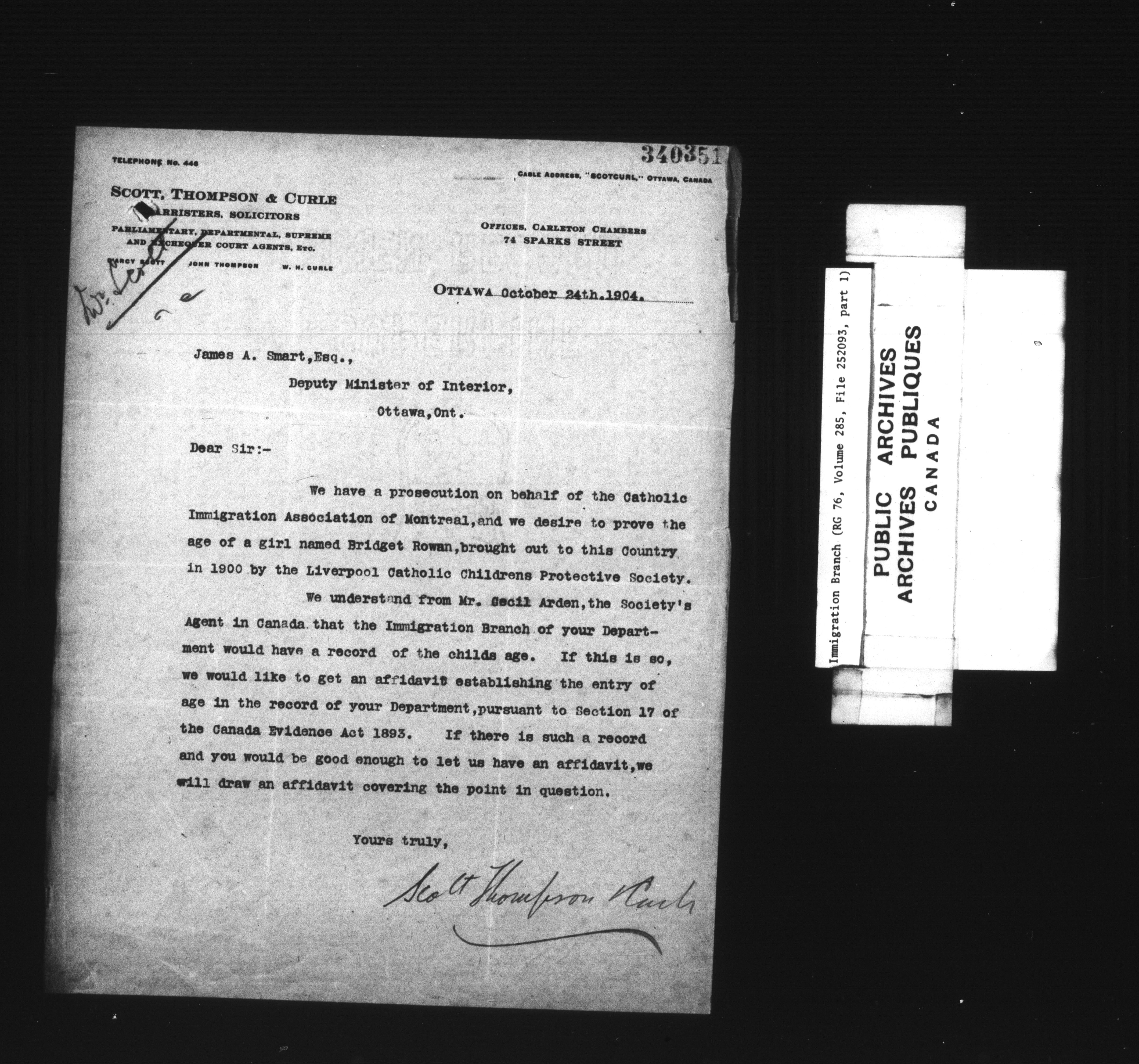Subject, policy and case files in the First Central Registry series of the Immigration Program, 1892-1950 - 7834
