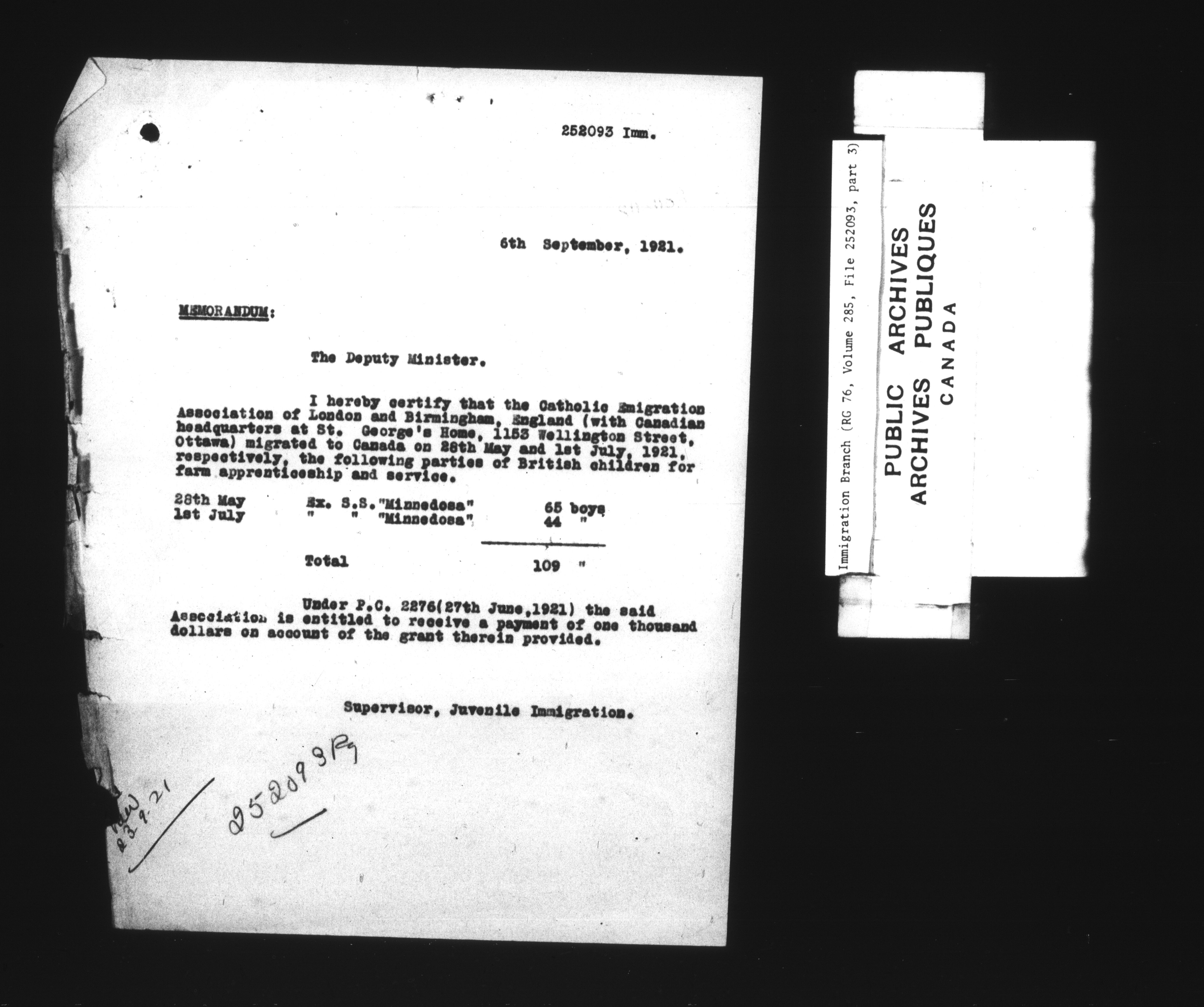 Subject, policy and case files in the First Central Registry series of the Immigration Program, 1892-1950 - 7834