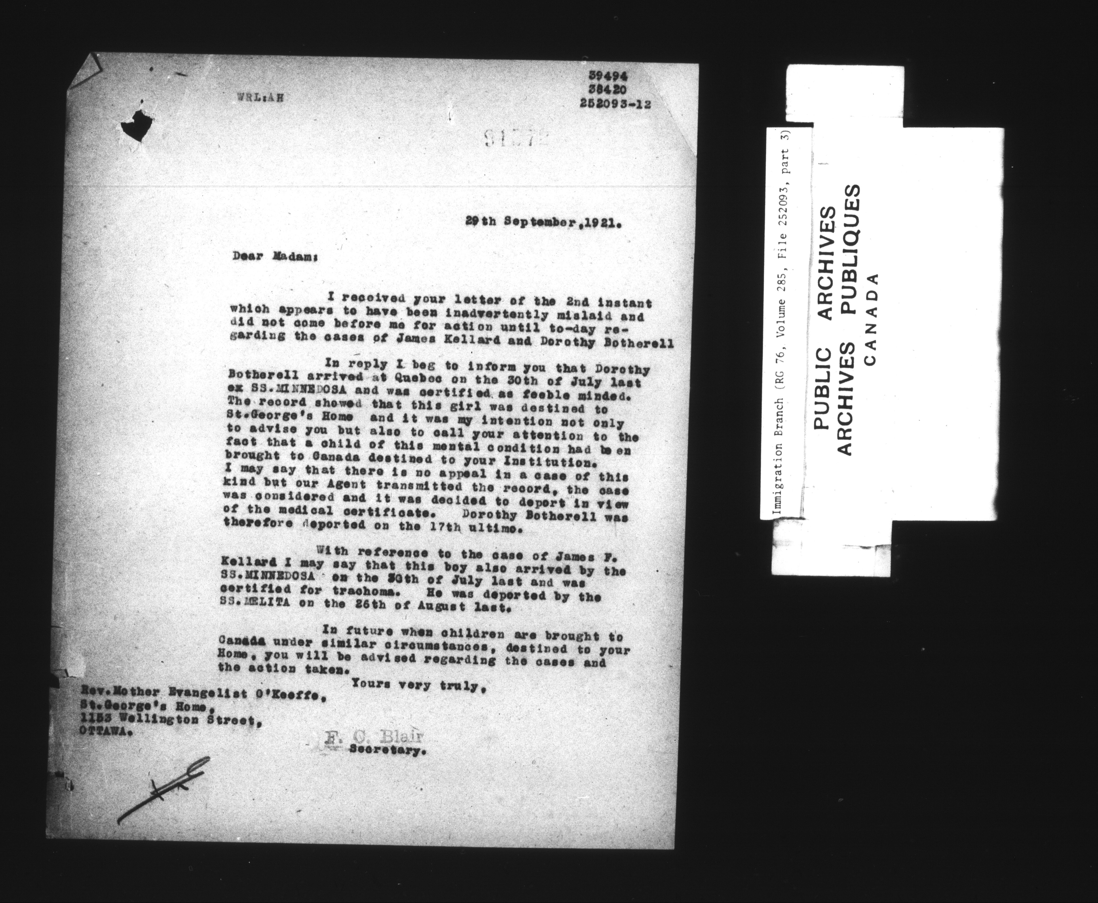 Subject, policy and case files in the First Central Registry series of the Immigration Program, 1892-1950 - 7834