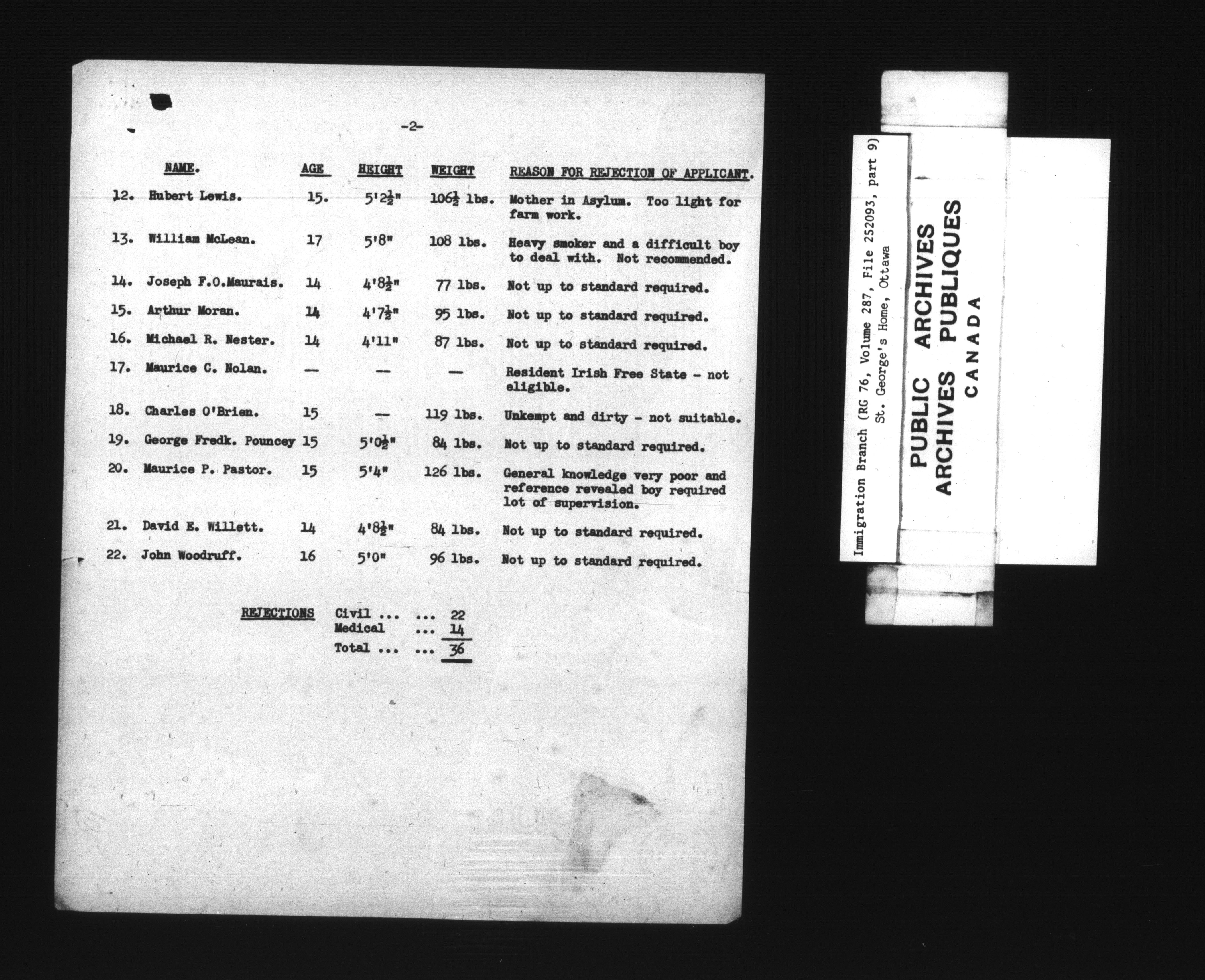 Subject, policy and case files in the First Central Registry series of the Immigration Program, 1892-1950 - 7836