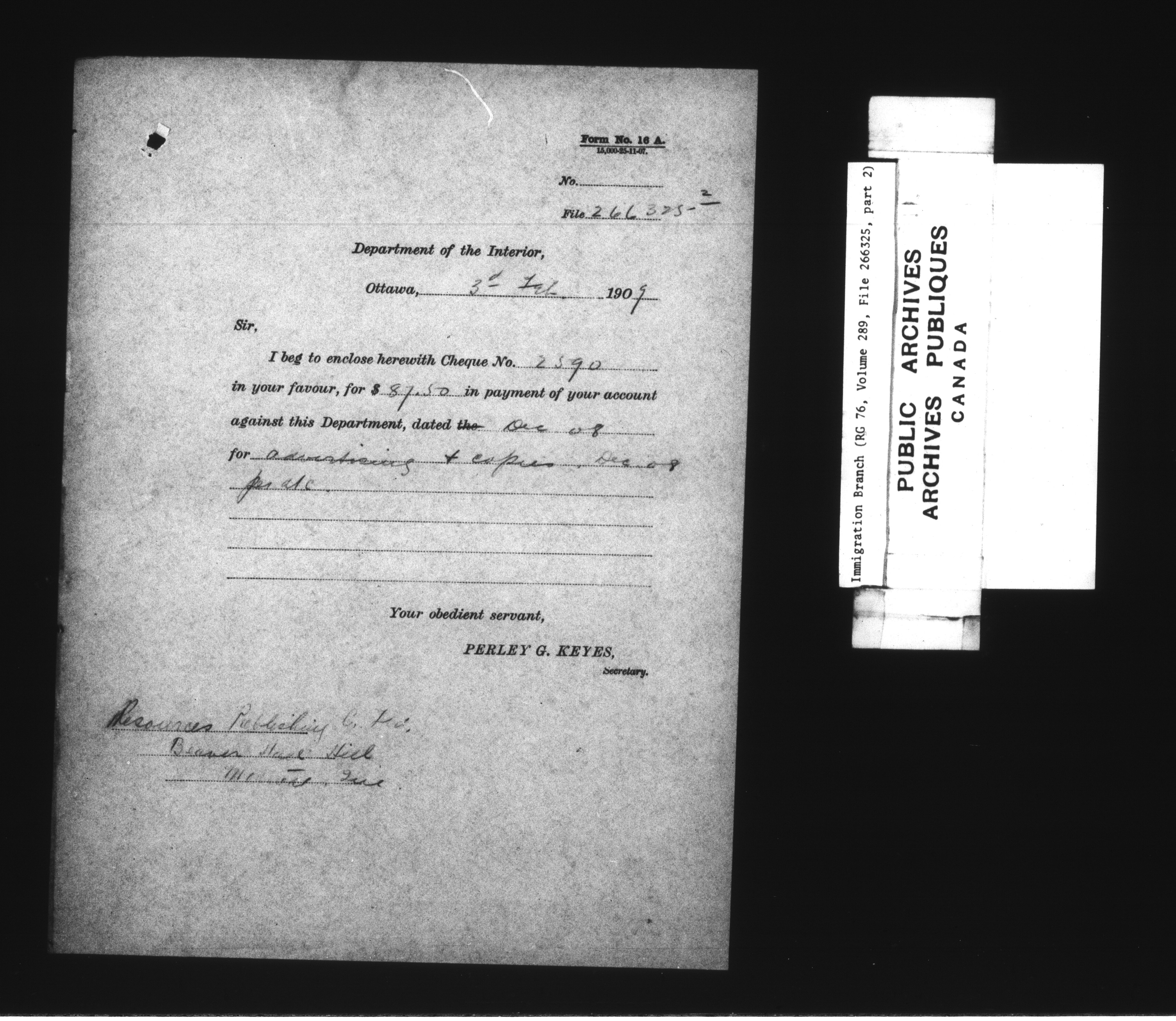 Subject, policy and case files in the First Central Registry series of the Immigration Program, 1892-1950 - 7838