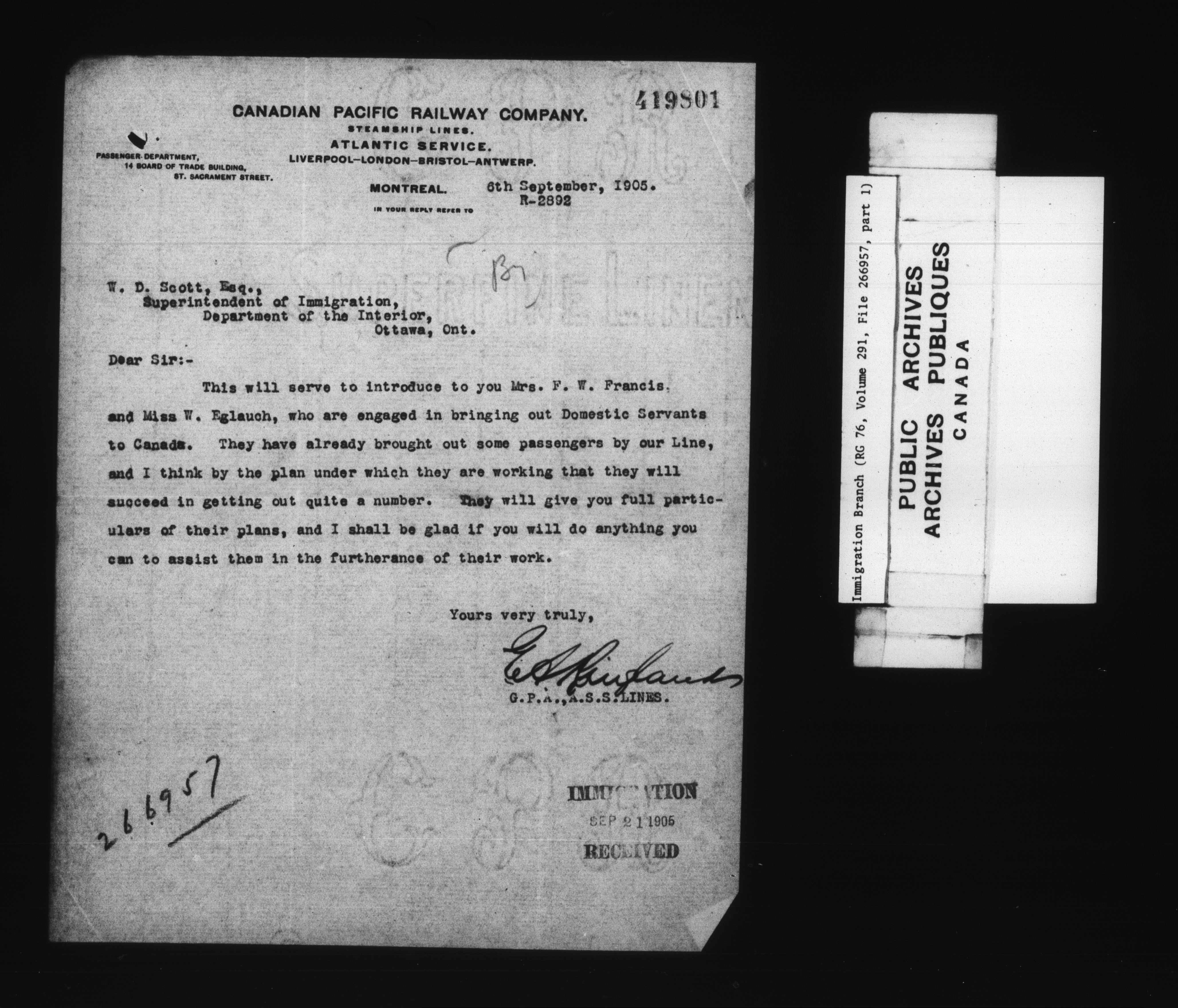 Subject, policy and case files in the First Central Registry series of the Immigration Program, 1892-1950 - 7840