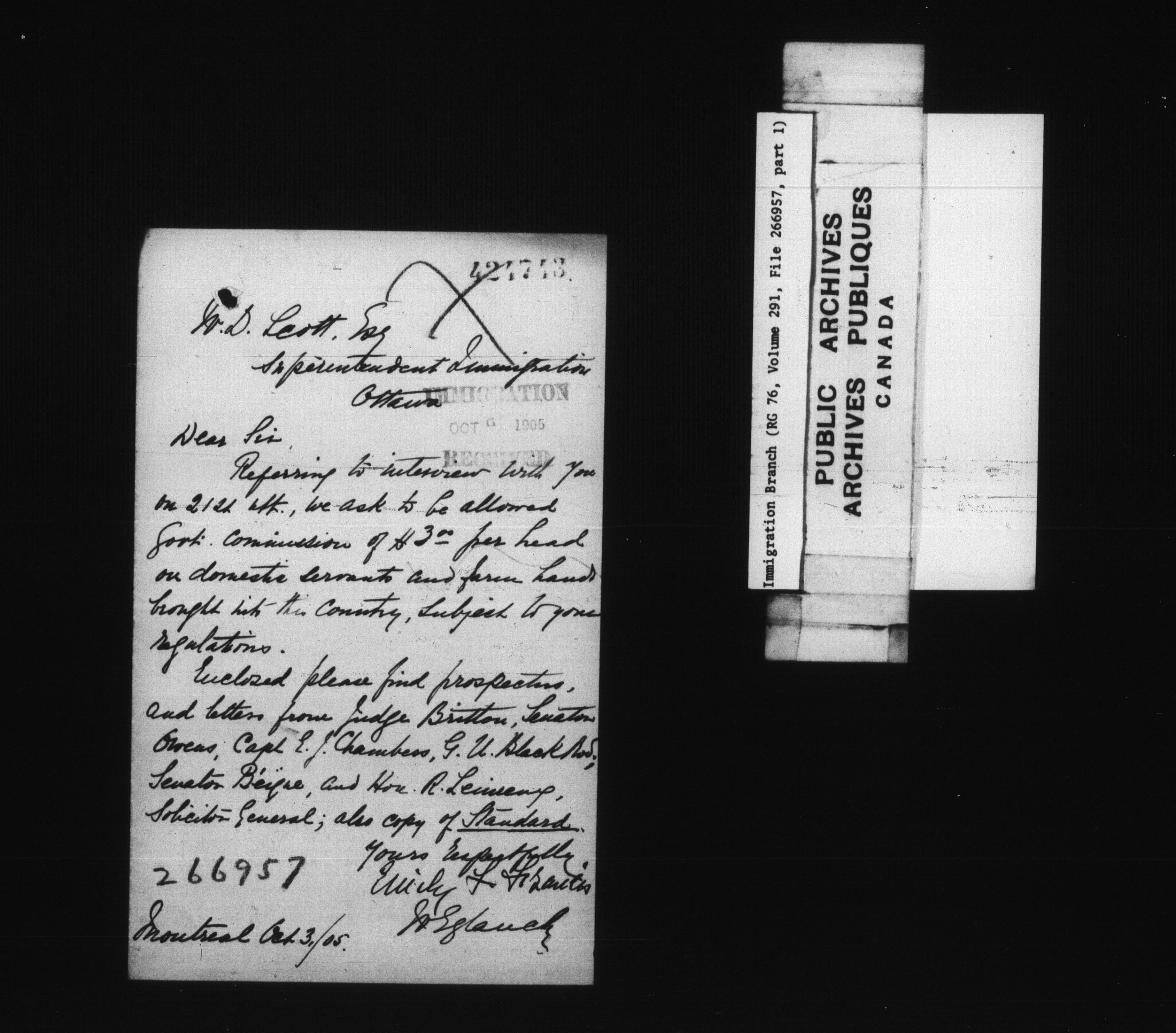 Subject, policy and case files in the First Central Registry series of the Immigration Program, 1892-1950 - 7840