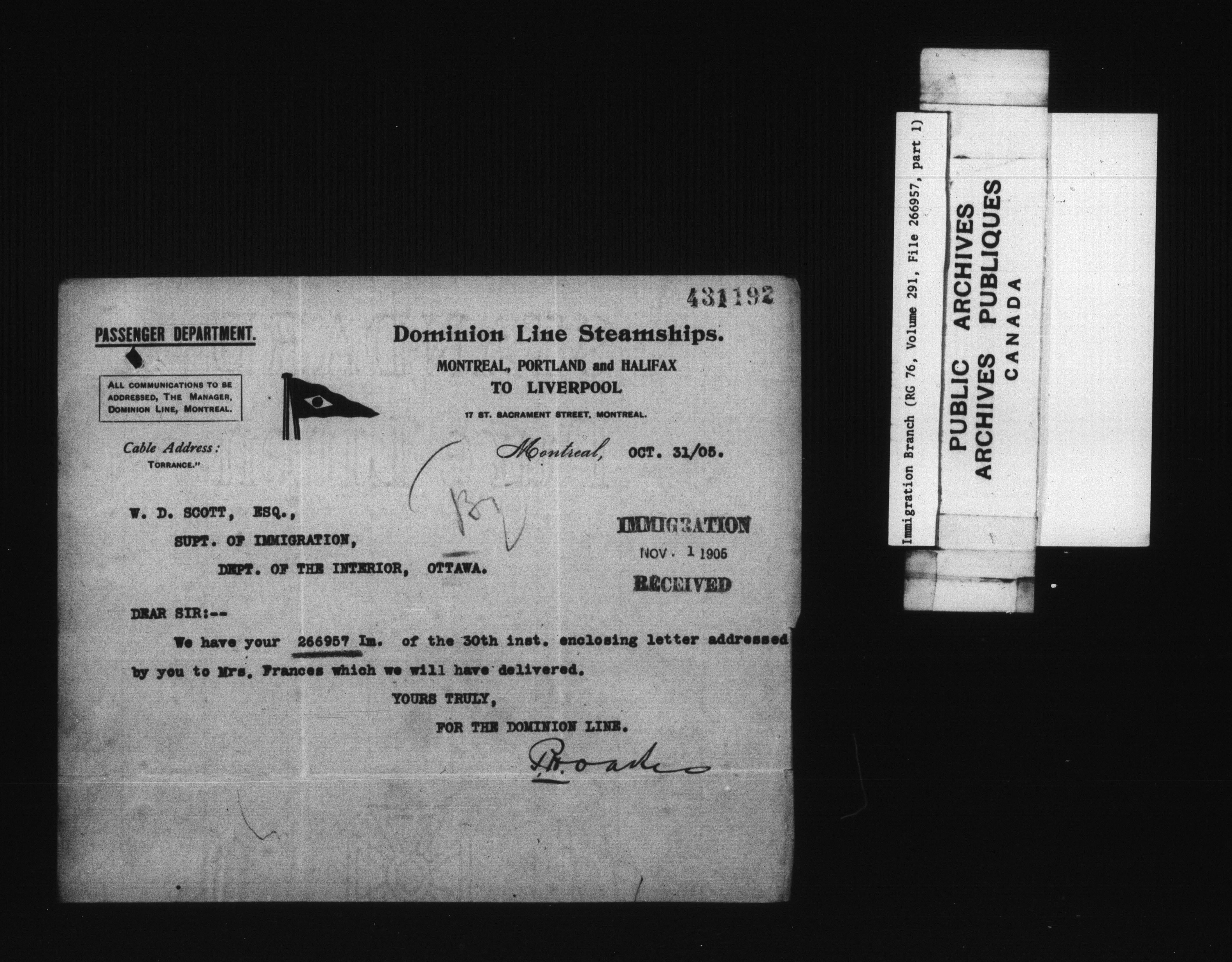 Subject, policy and case files in the First Central Registry series of the Immigration Program, 1892-1950 - 7840