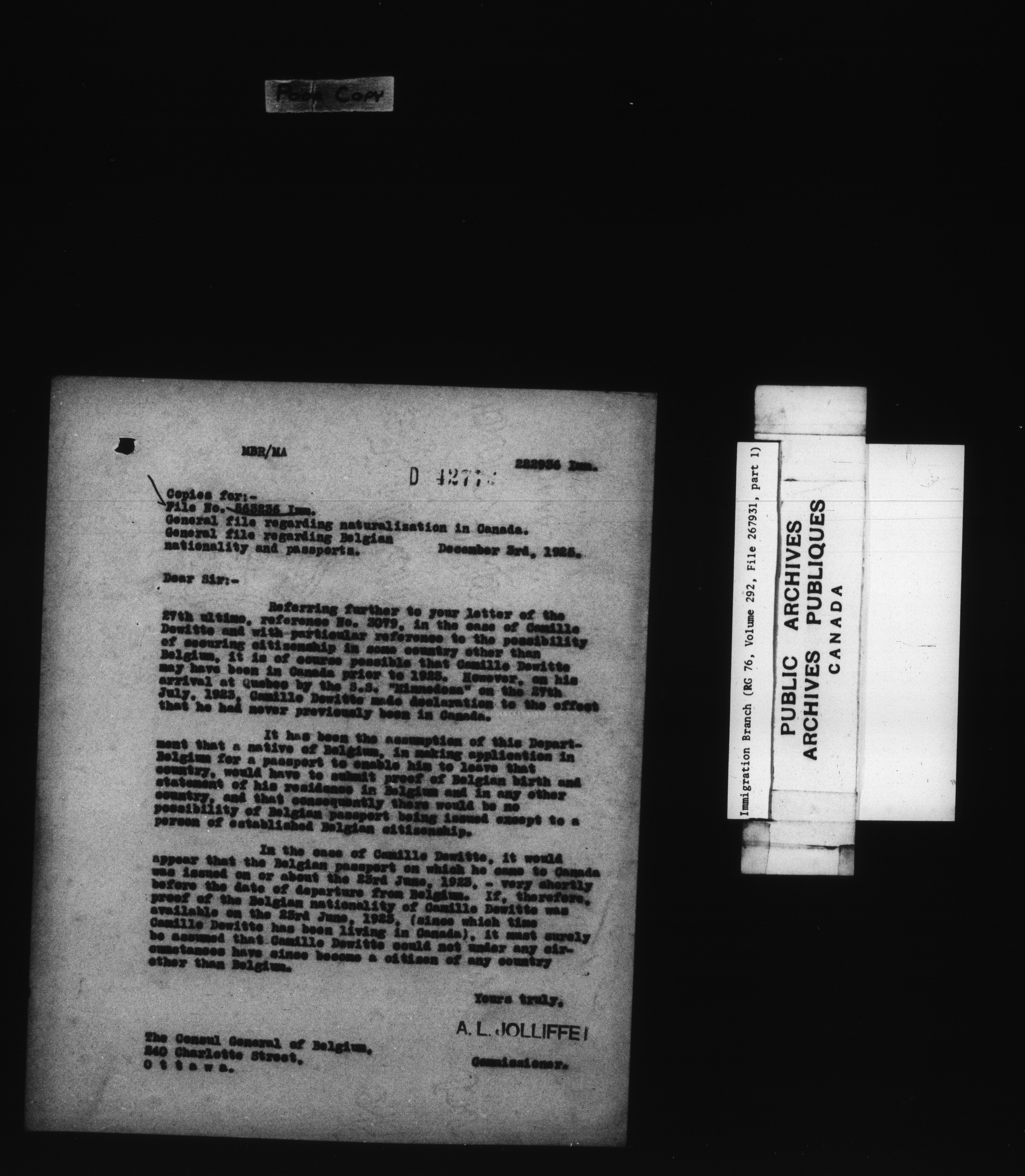 Subject, policy and case files in the First Central Registry series of the Immigration Program, 1892-1950 - 7842