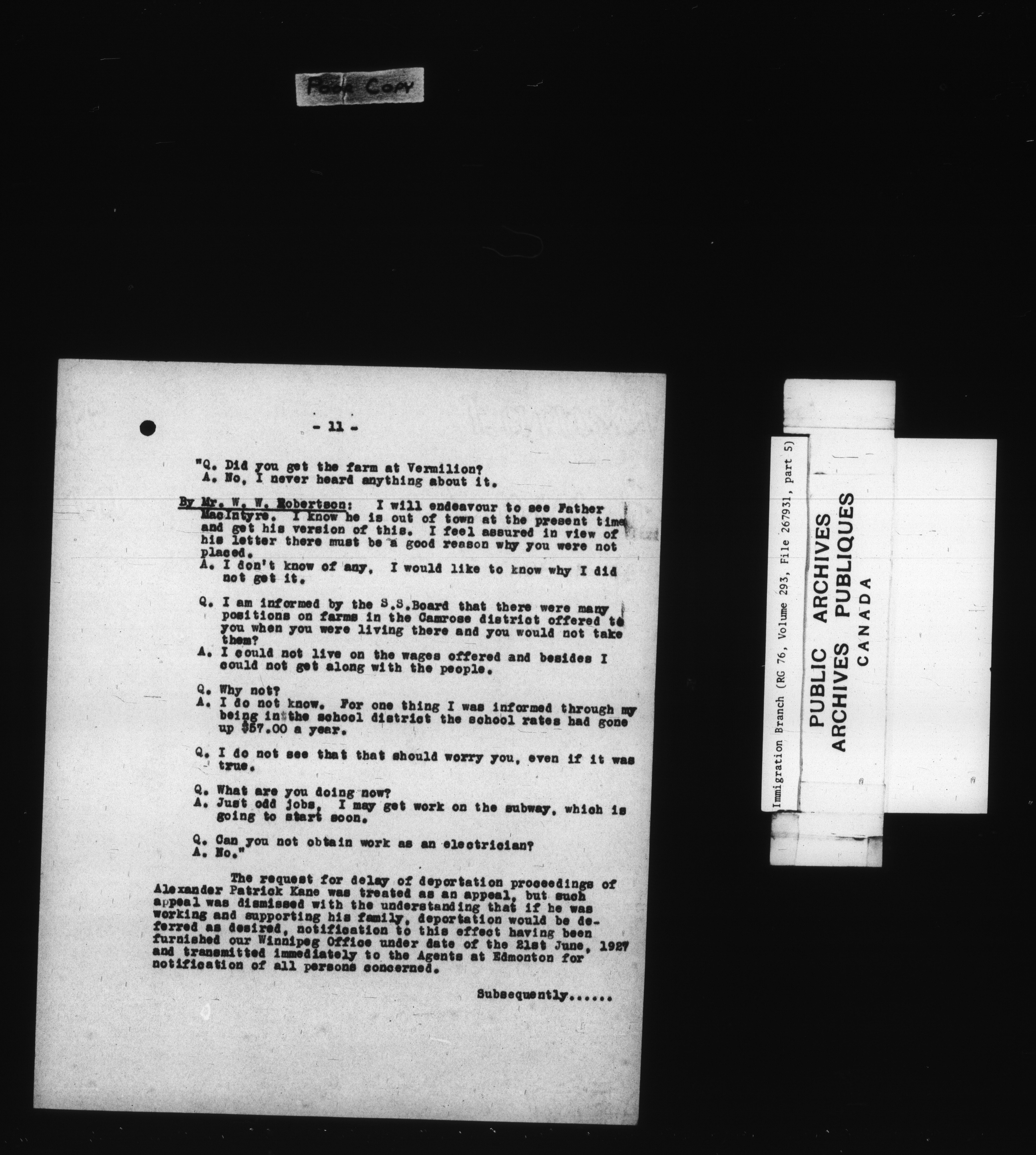 Subject, policy and case files in the First Central Registry series of the Immigration Program, 1892-1950 - 7842