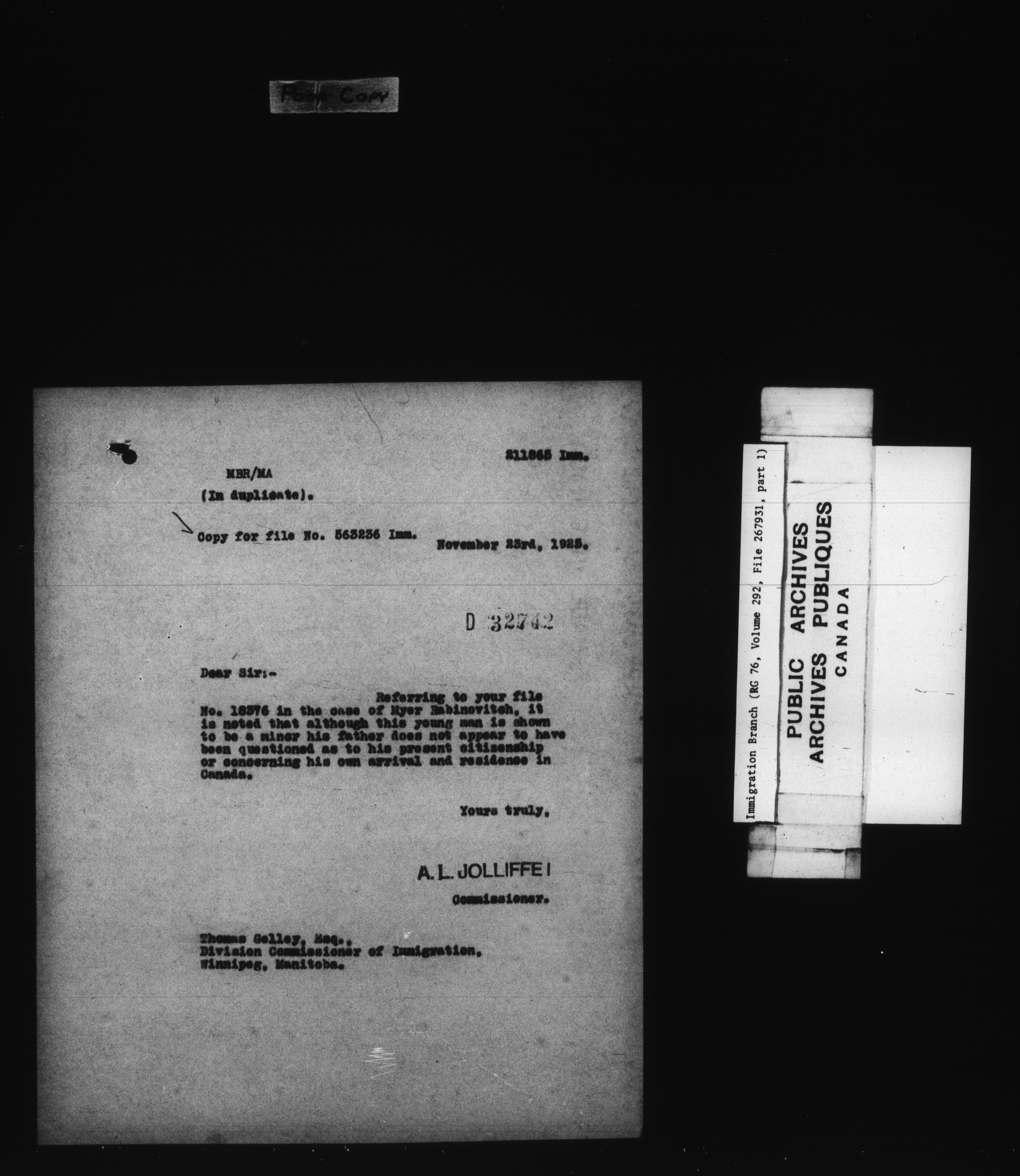 Subject, policy and case files in the First Central Registry series of the Immigration Program, 1892-1950 - 7842