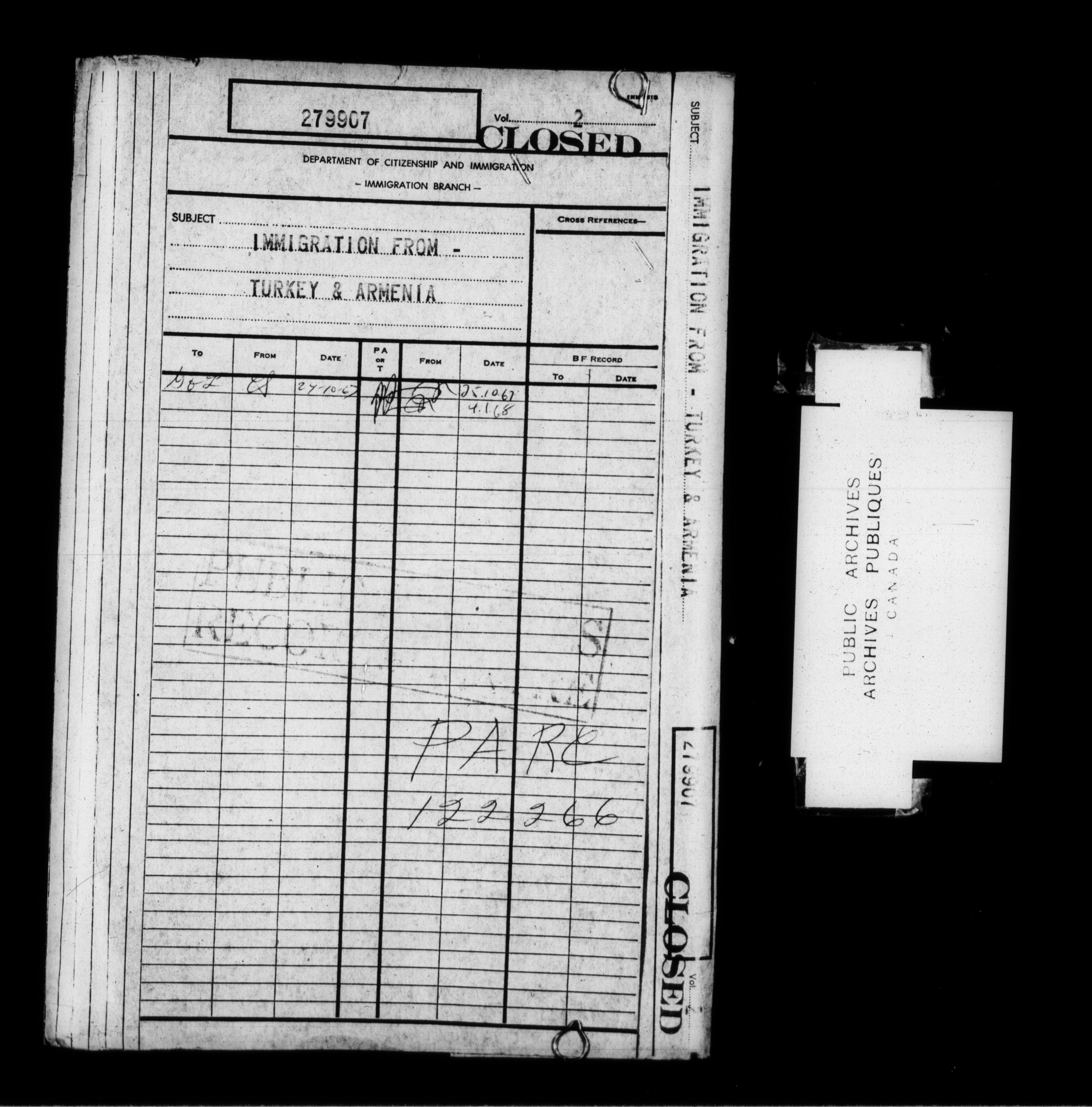 Subject, policy and case files in the First Central Registry series of the Immigration Program, 1892-1950 - 7849