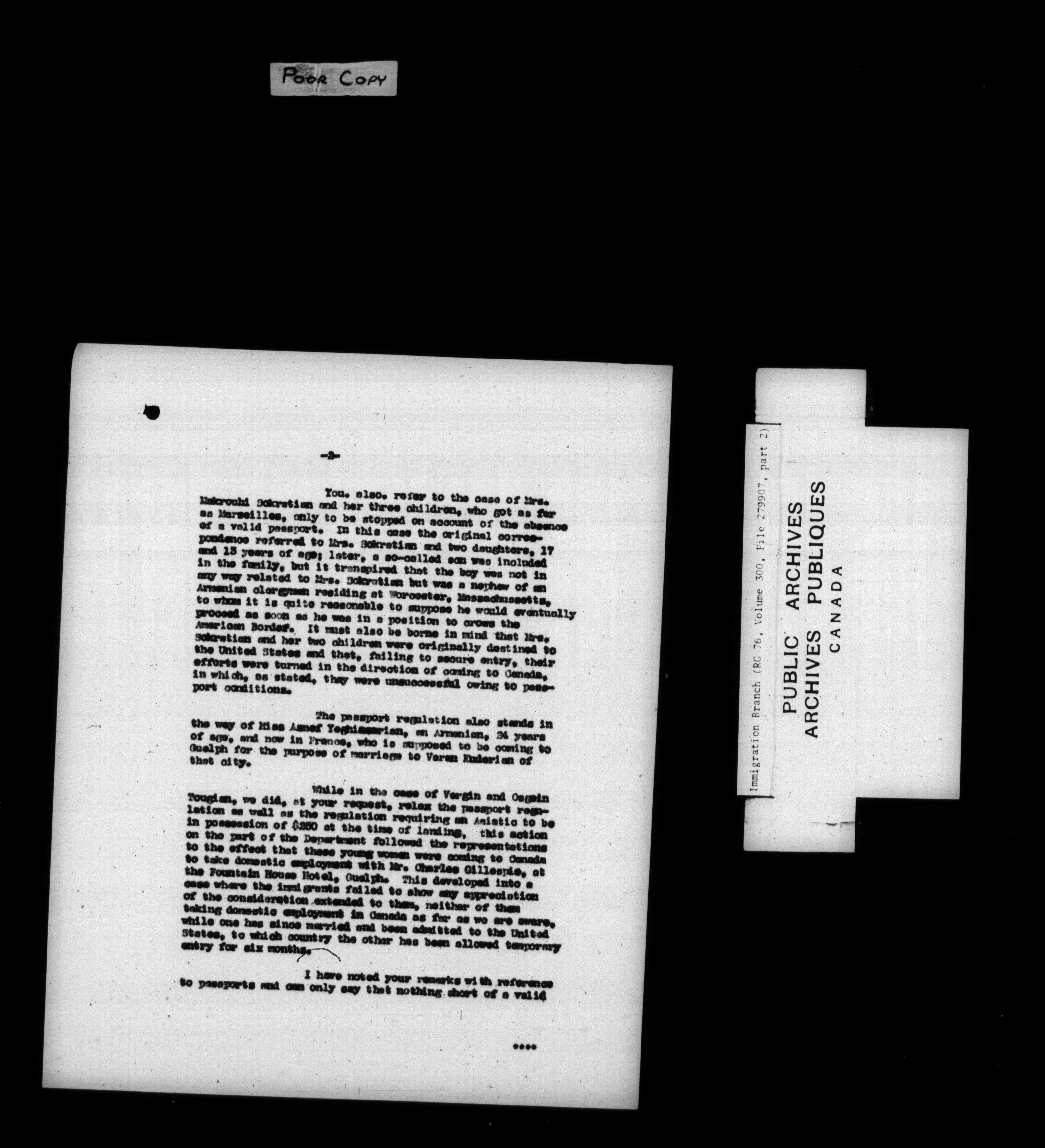 Subject, policy and case files in the First Central Registry series of the Immigration Program, 1892-1950 - 7850