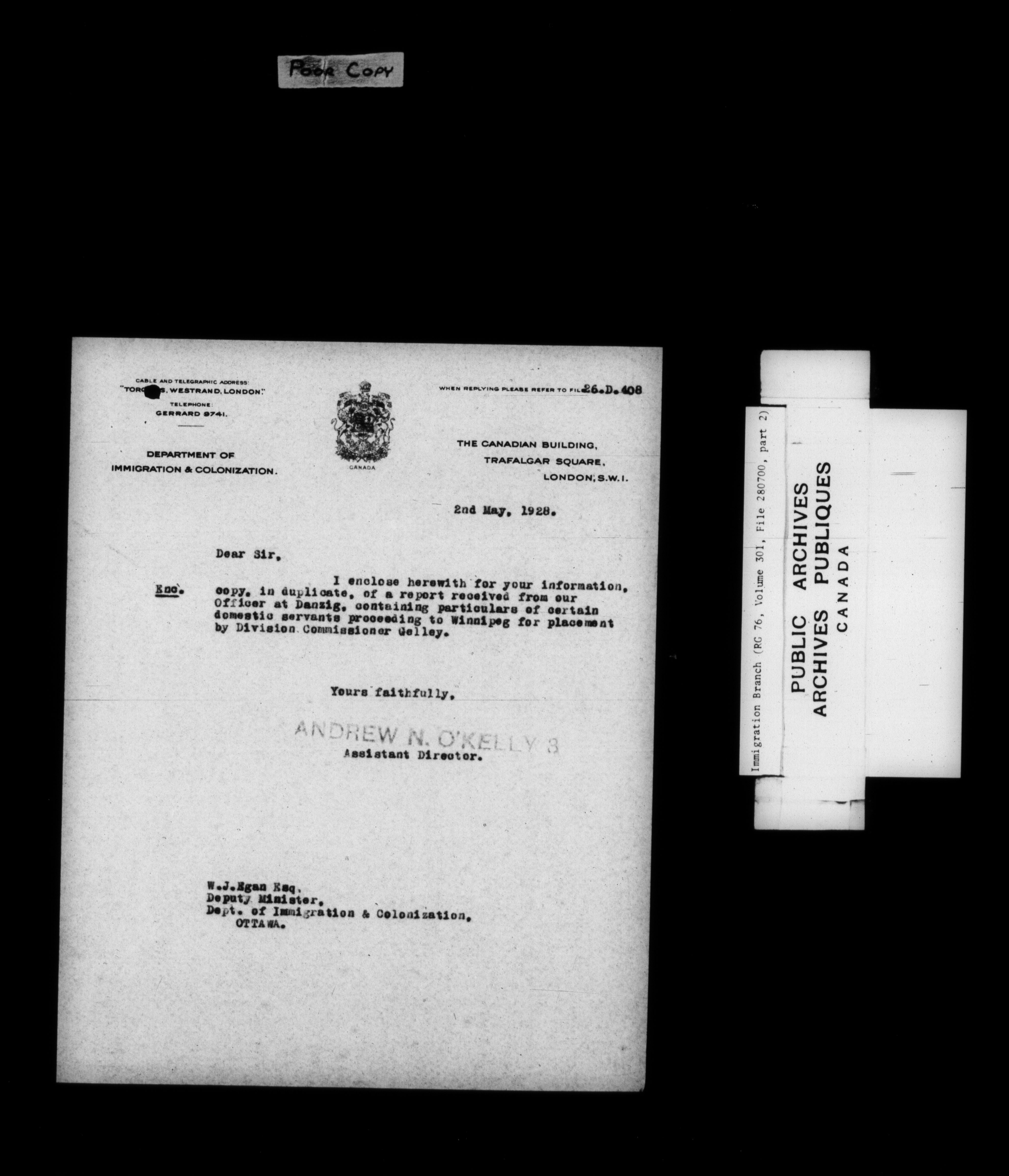 Subject, policy and case files in the First Central Registry series of the Immigration Program, 1892-1950 - 7851
