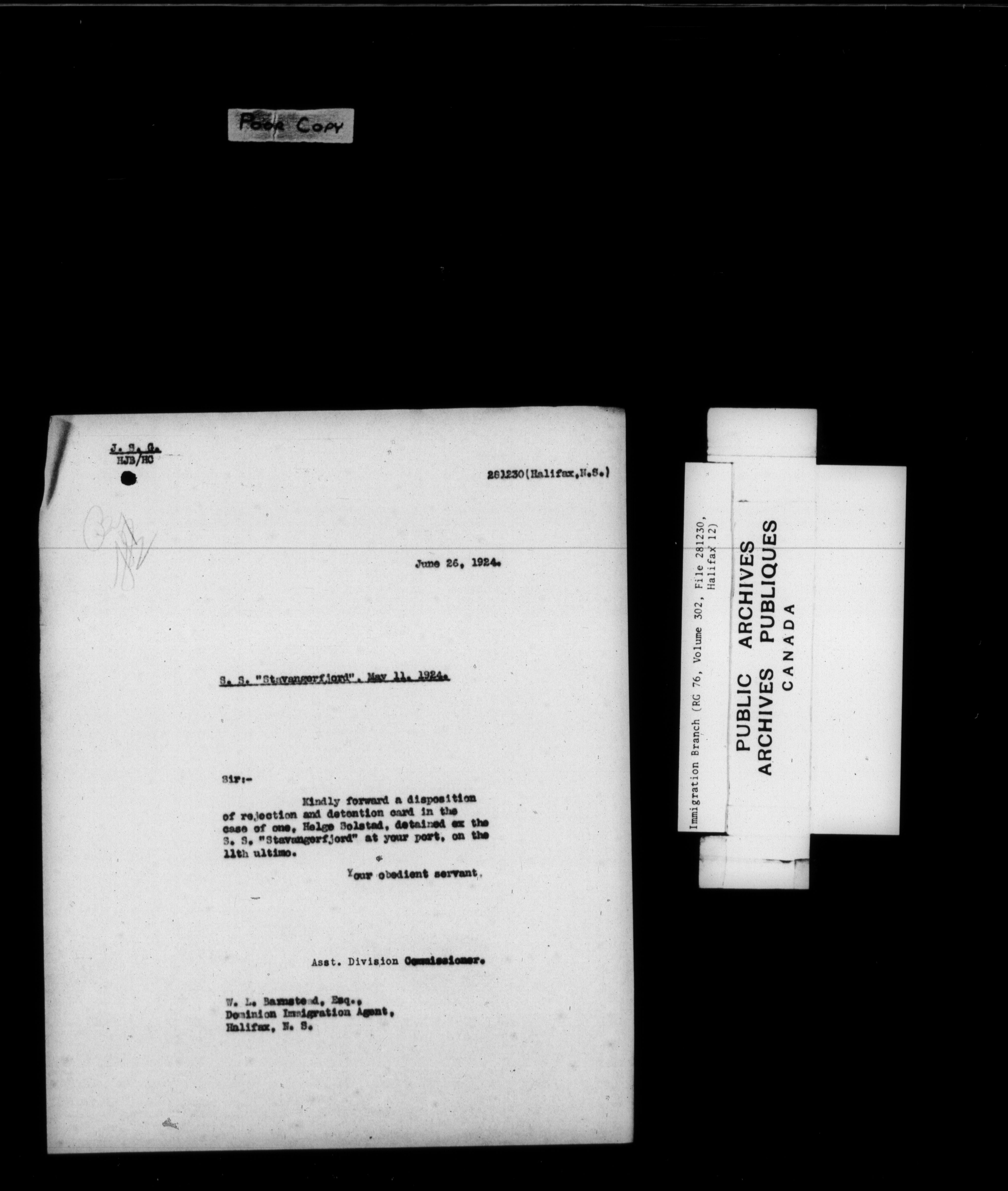 Subject, policy and case files in the First Central Registry series of the Immigration Program, 1892-1950 - 7852