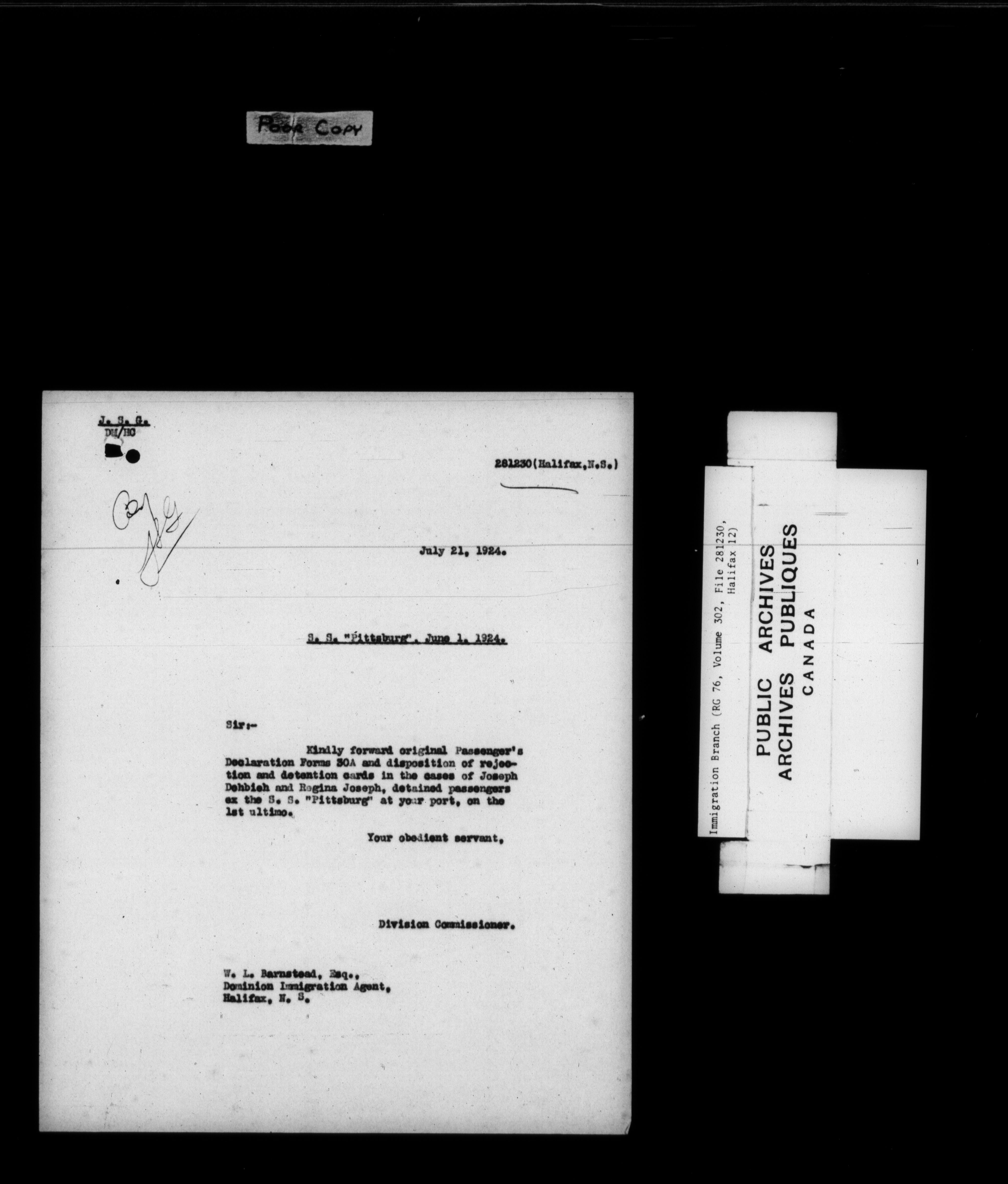 Subject, policy and case files in the First Central Registry series of the Immigration Program, 1892-1950 - 7852