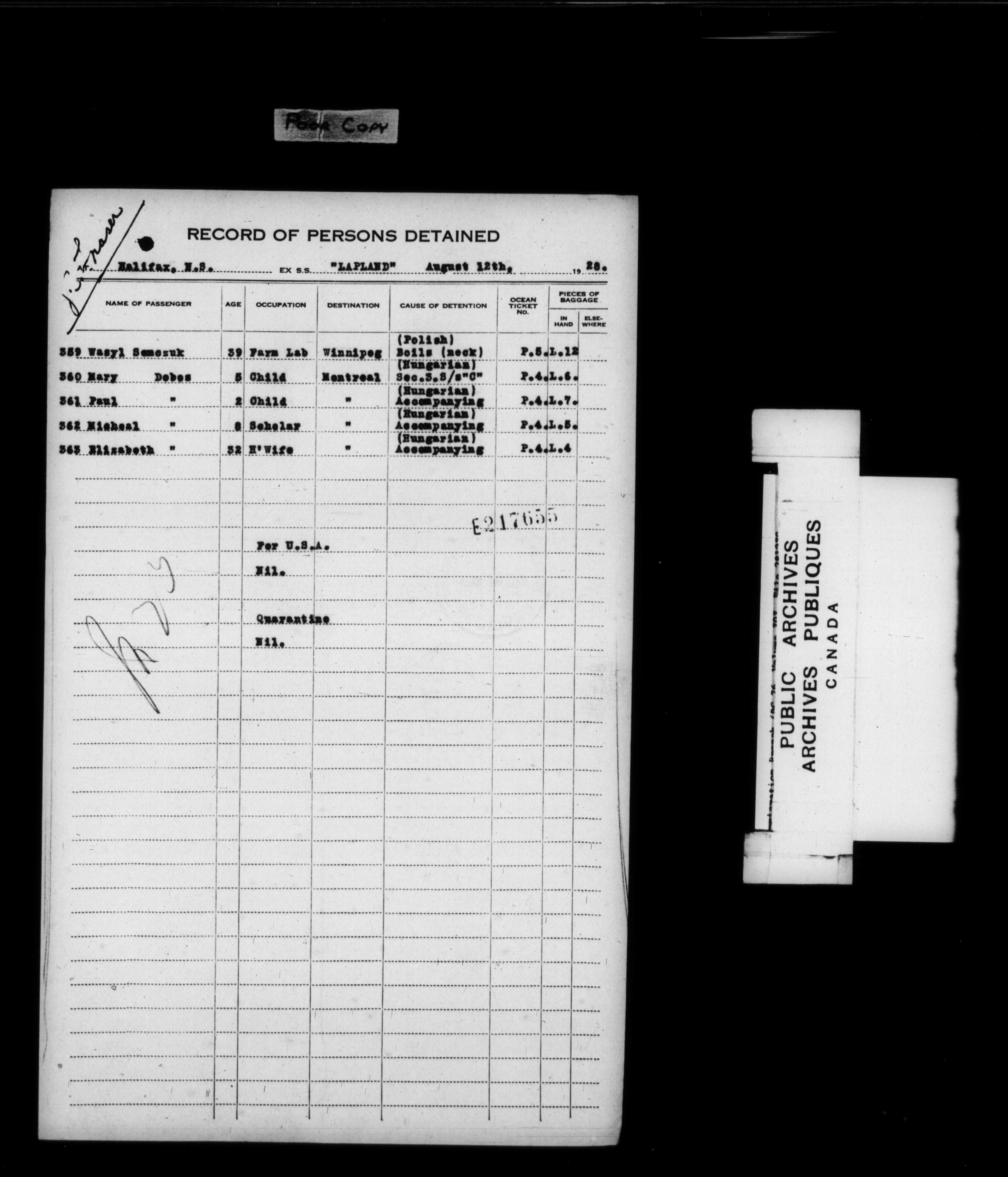Subject, policy and case files in the First Central Registry series of the Immigration Program, 1892-1950 - 7852