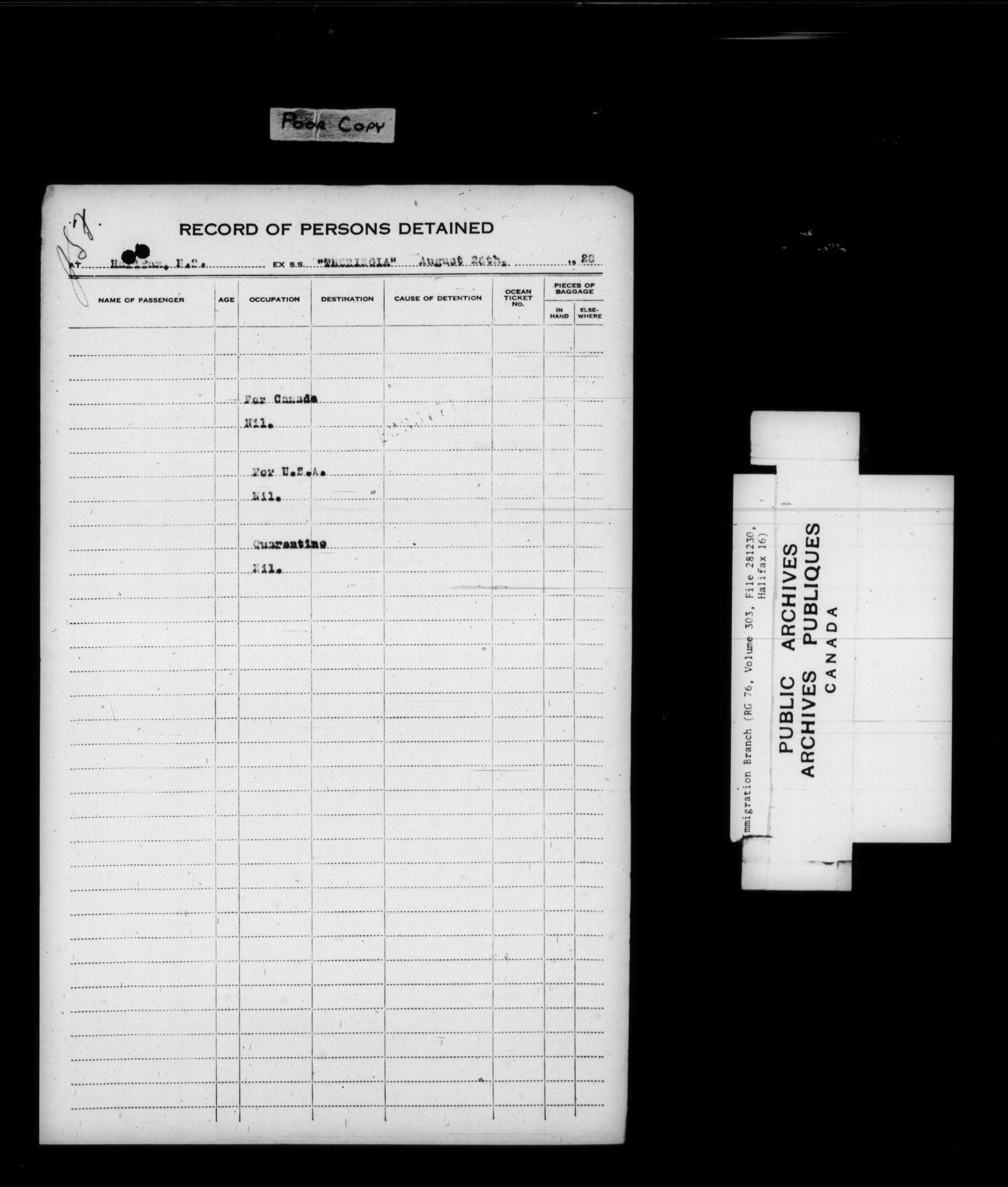 Subject, policy and case files in the First Central Registry series of the Immigration Program, 1892-1950 - 7852