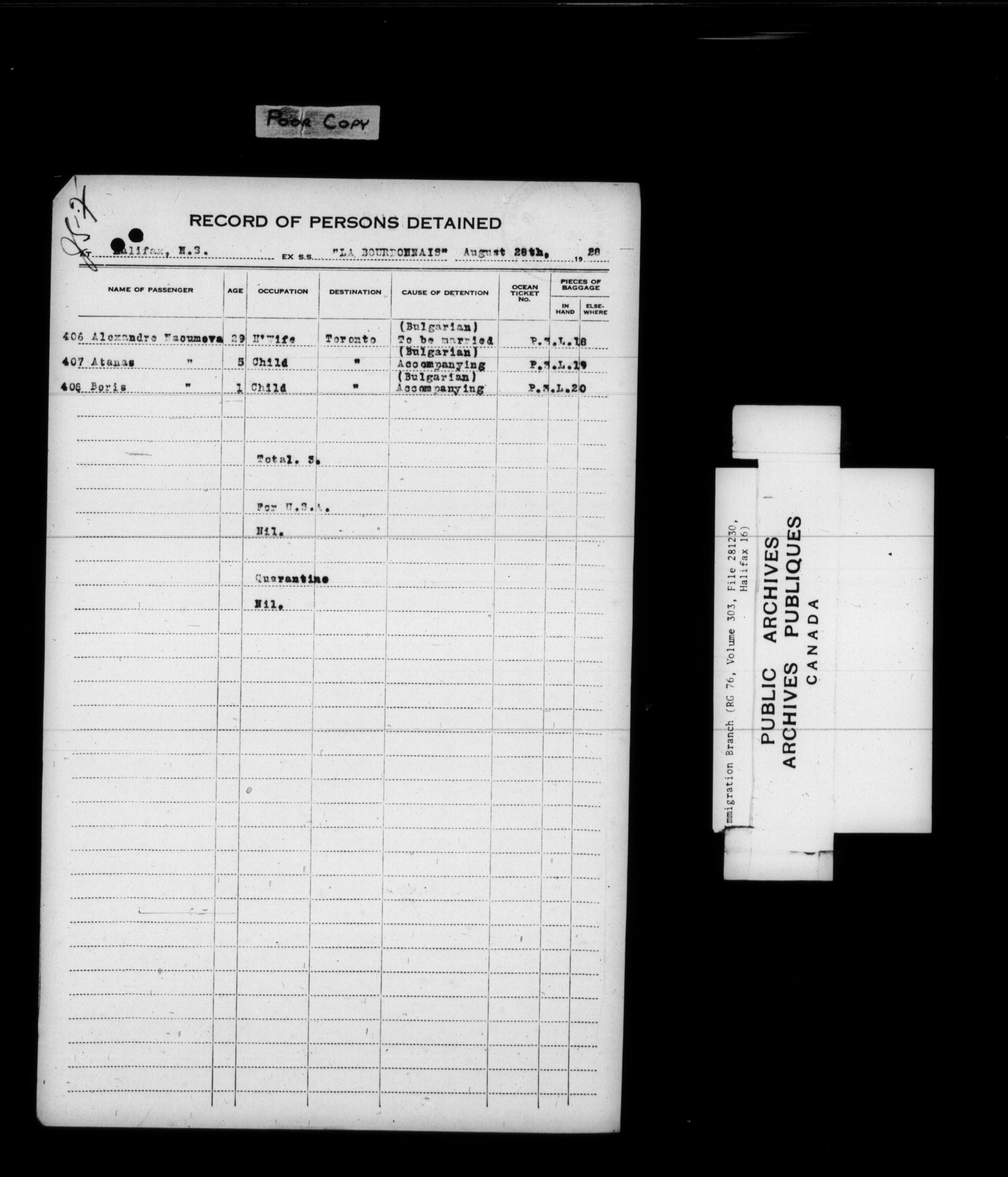 Subject, policy and case files in the First Central Registry series of the Immigration Program, 1892-1950 - 7852