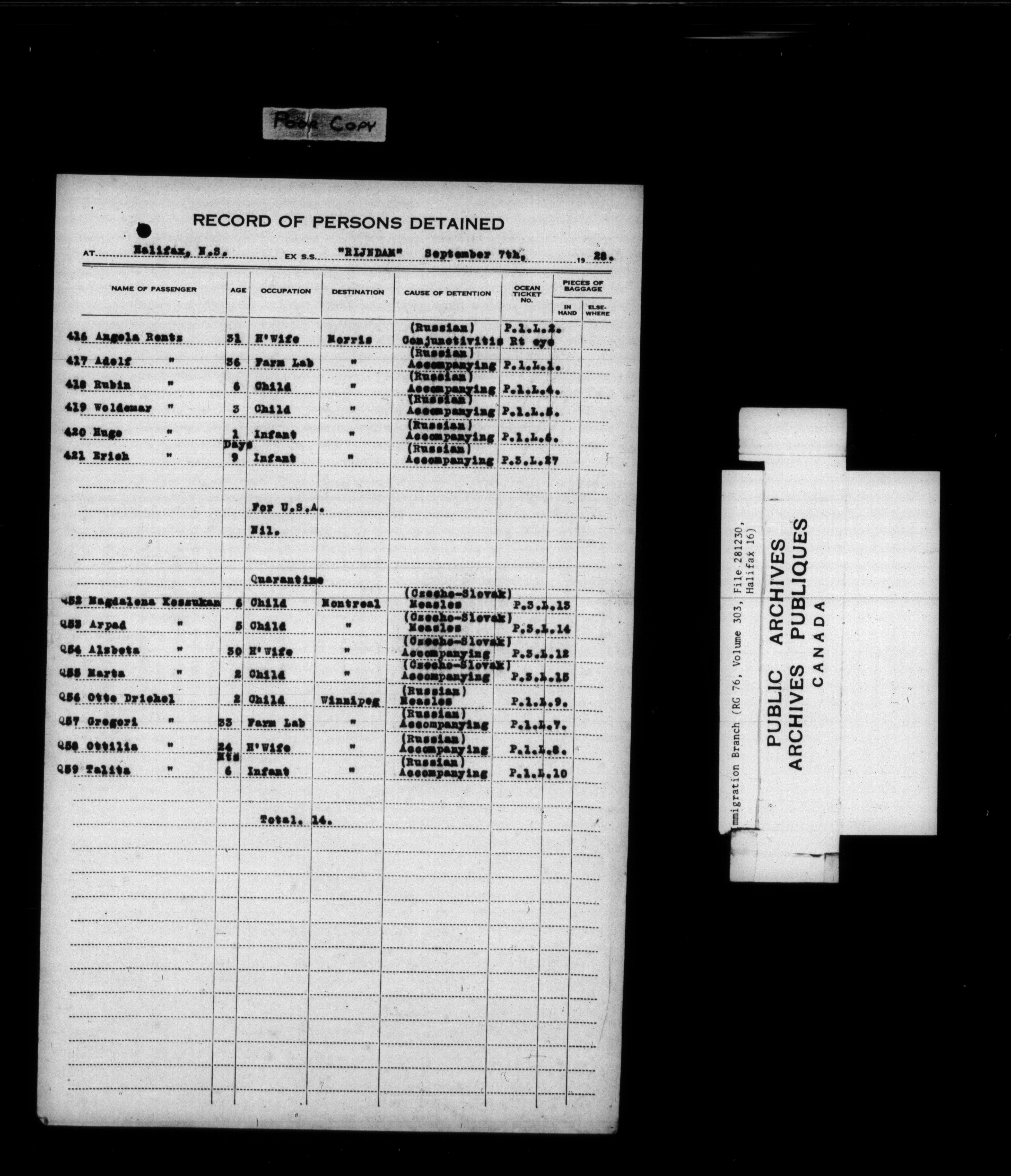 Subject, policy and case files in the First Central Registry series of the Immigration Program, 1892-1950 - 7852