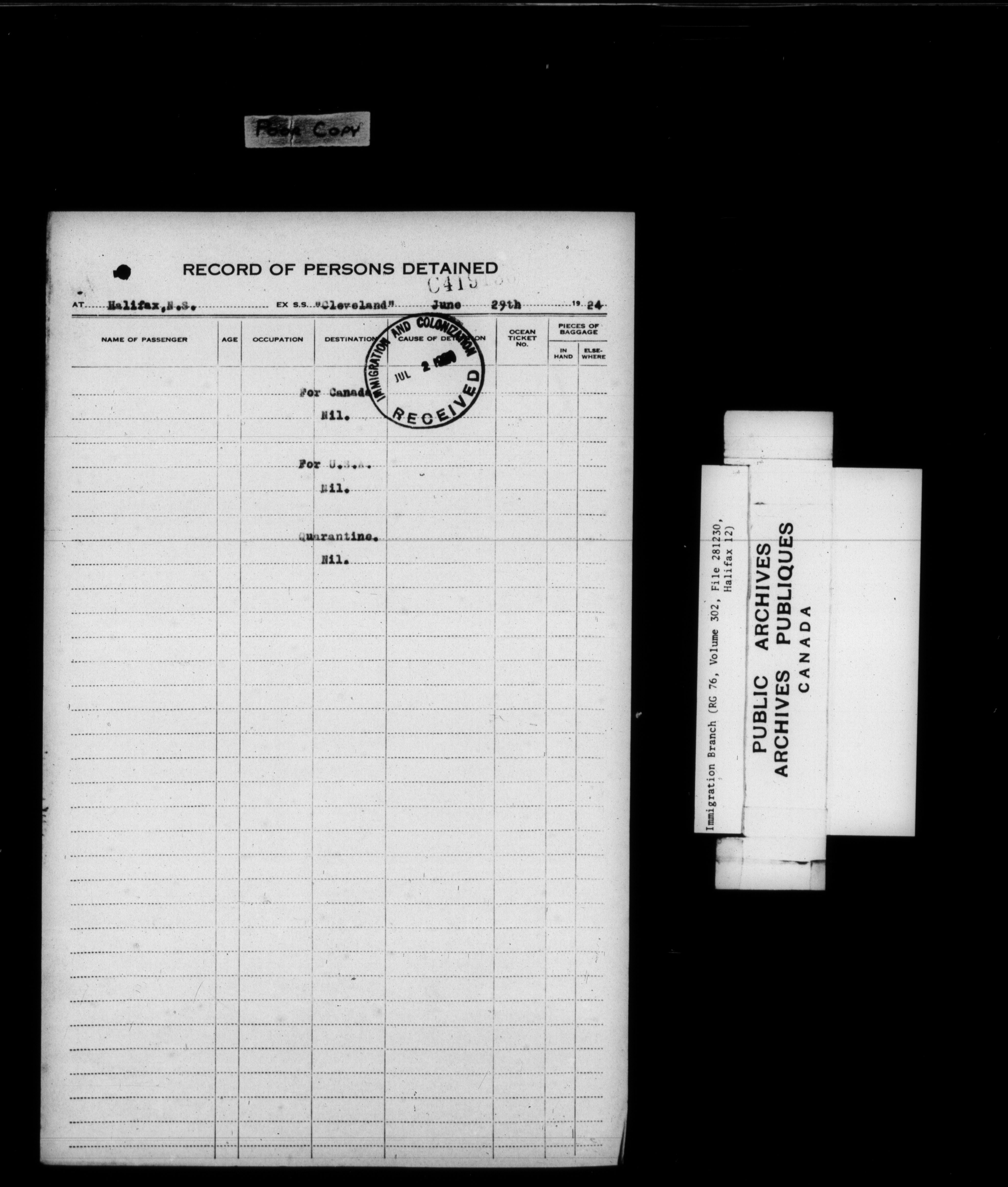 Subject, policy and case files in the First Central Registry series of the Immigration Program, 1892-1950 - 7852