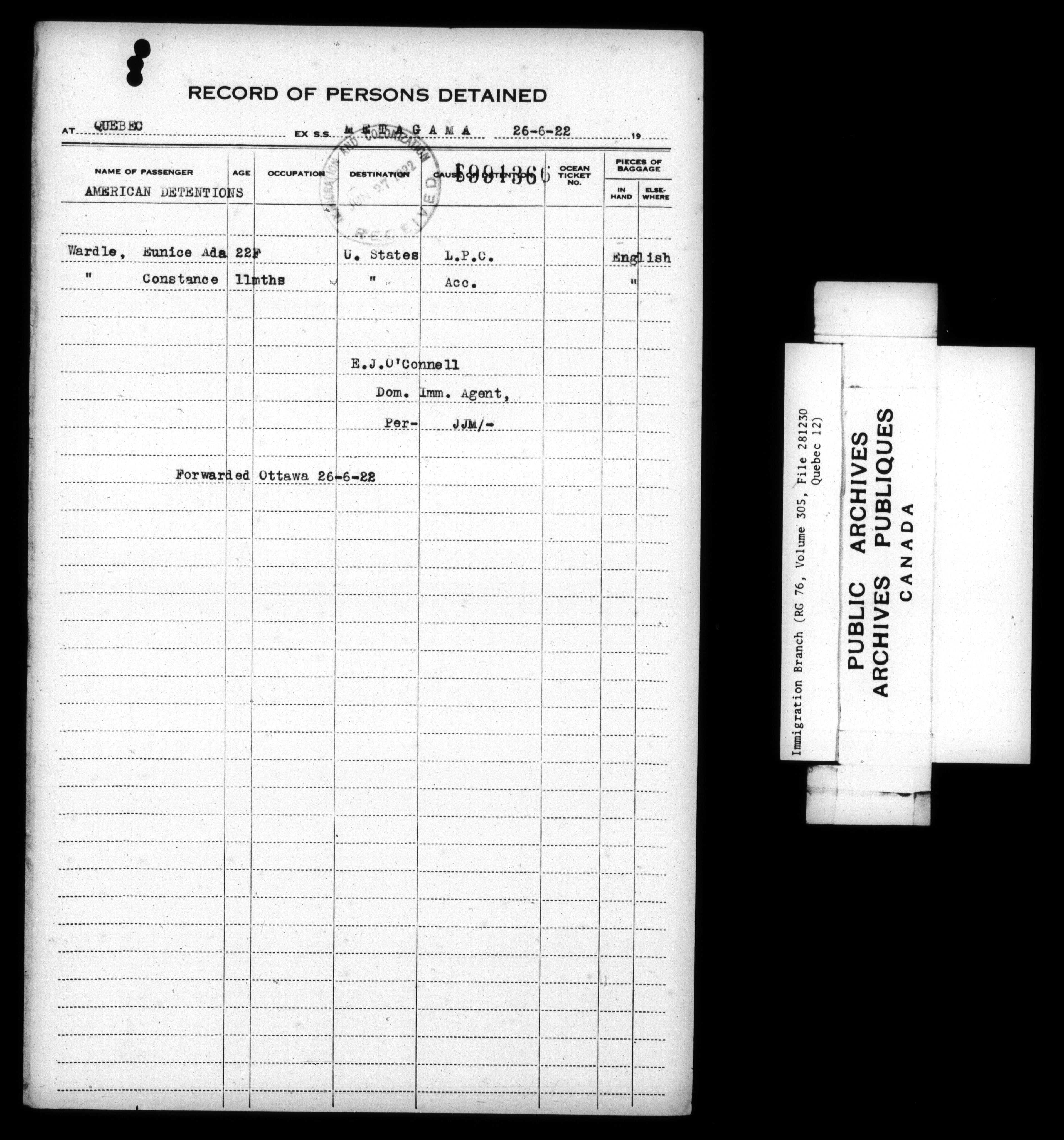 Subject, policy and case files in the First Central Registry series of the Immigration Program, 1892-1950 - 7855