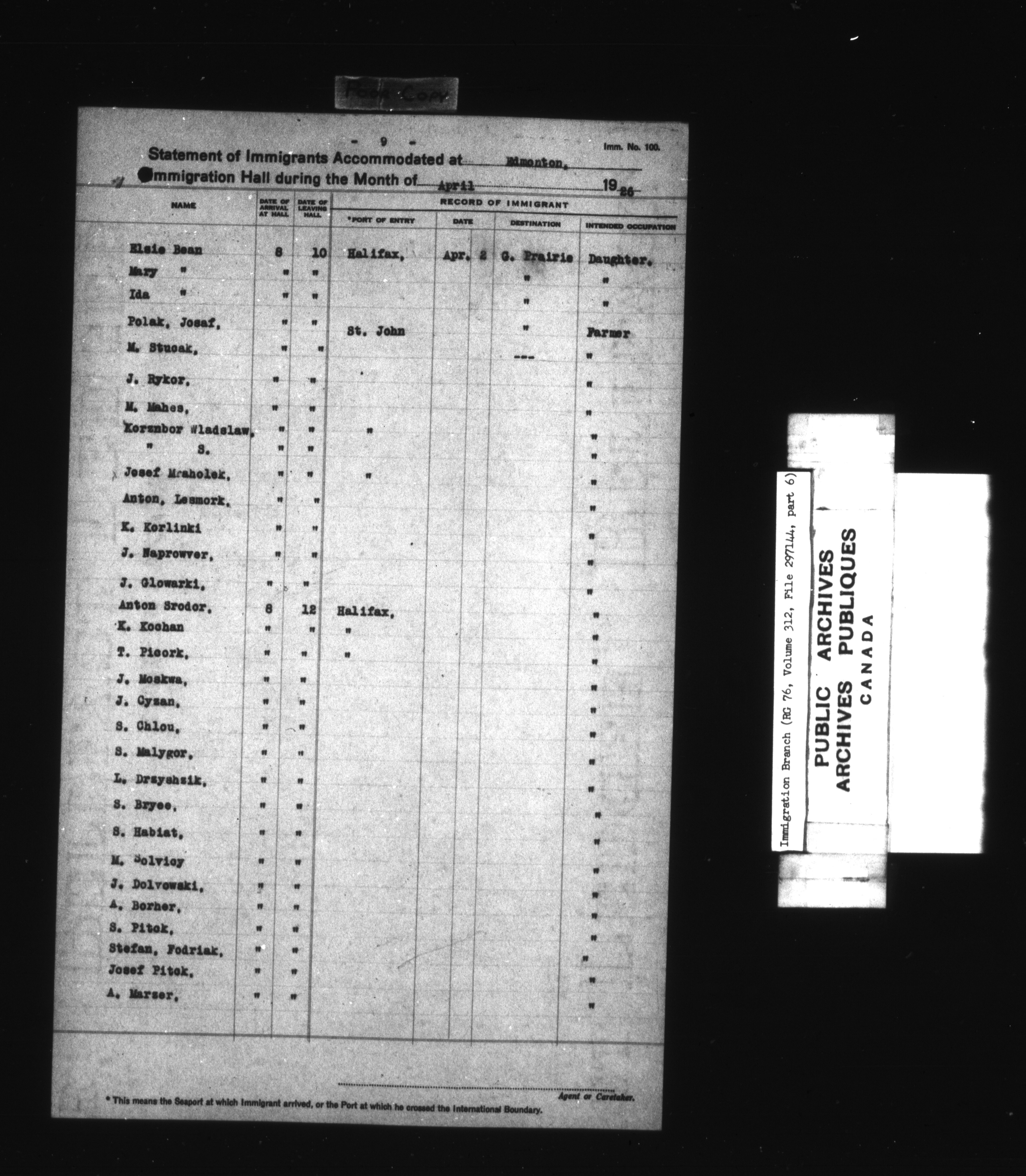 Immigration Program : Headquarters central registry files : C-7863