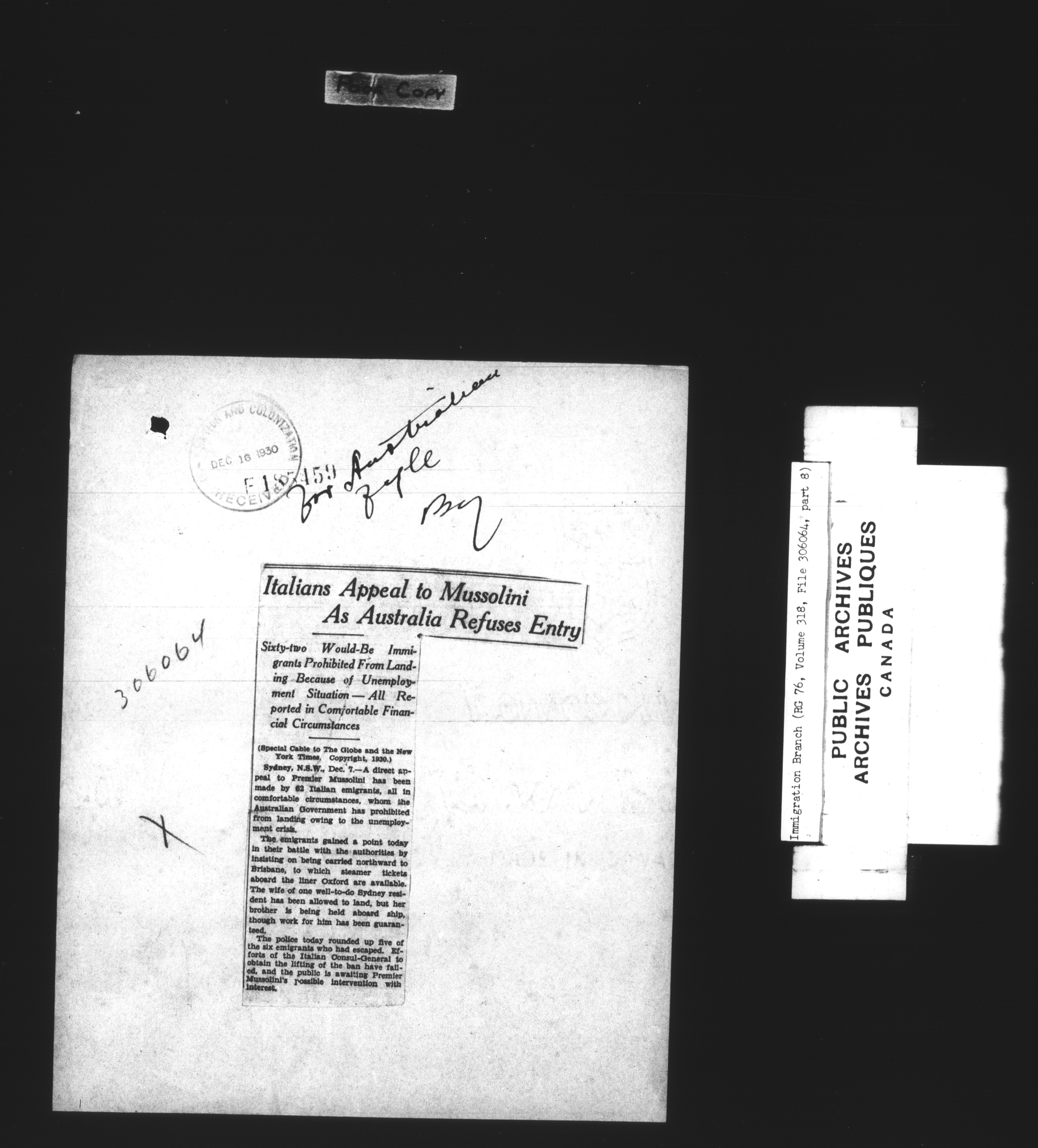 Subject, policy and case files in the First Central Registry series of the Immigration Program, 1892-1950 - 7869