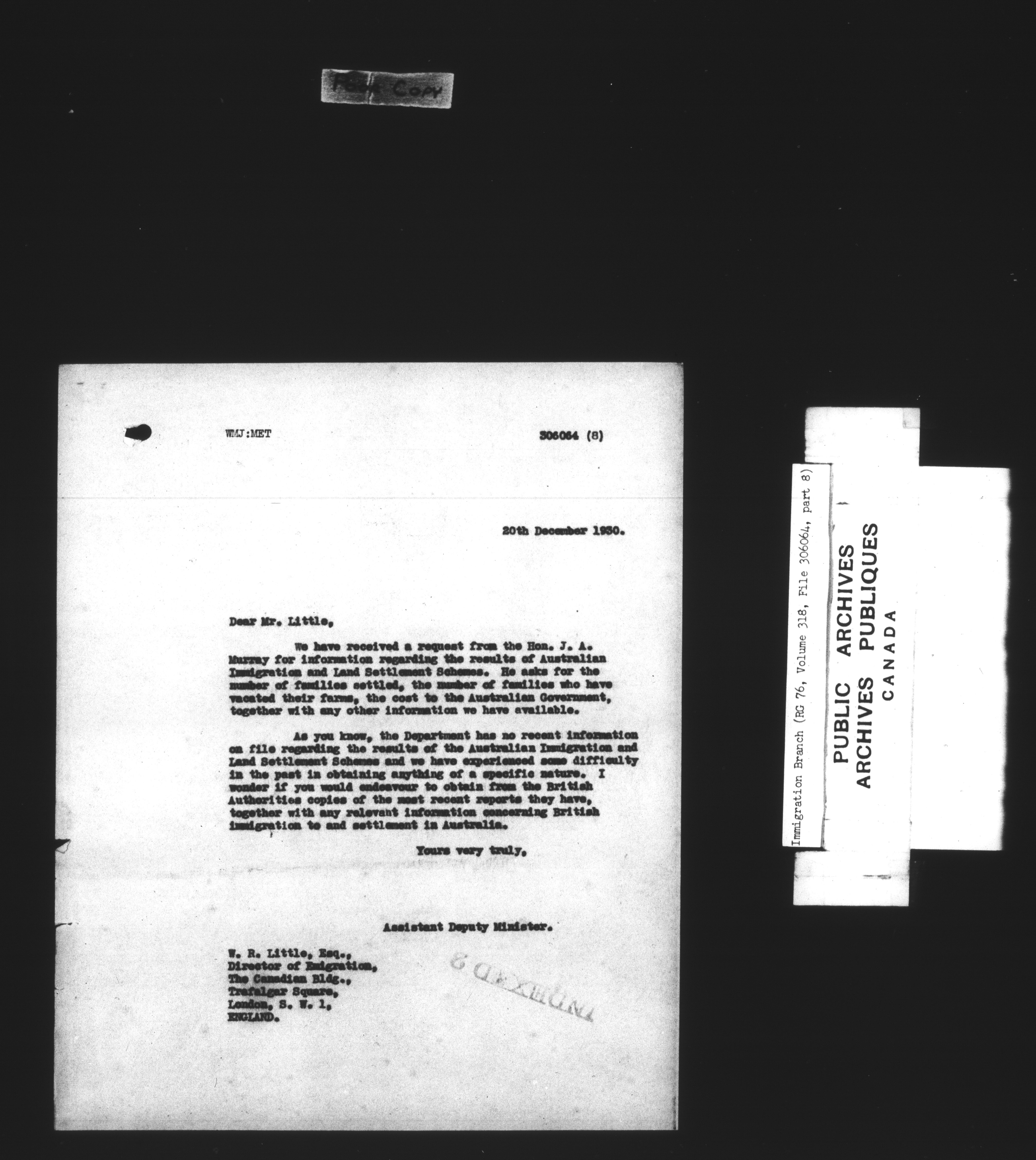 Subject, policy and case files in the First Central Registry series of the Immigration Program, 1892-1950 - 7869