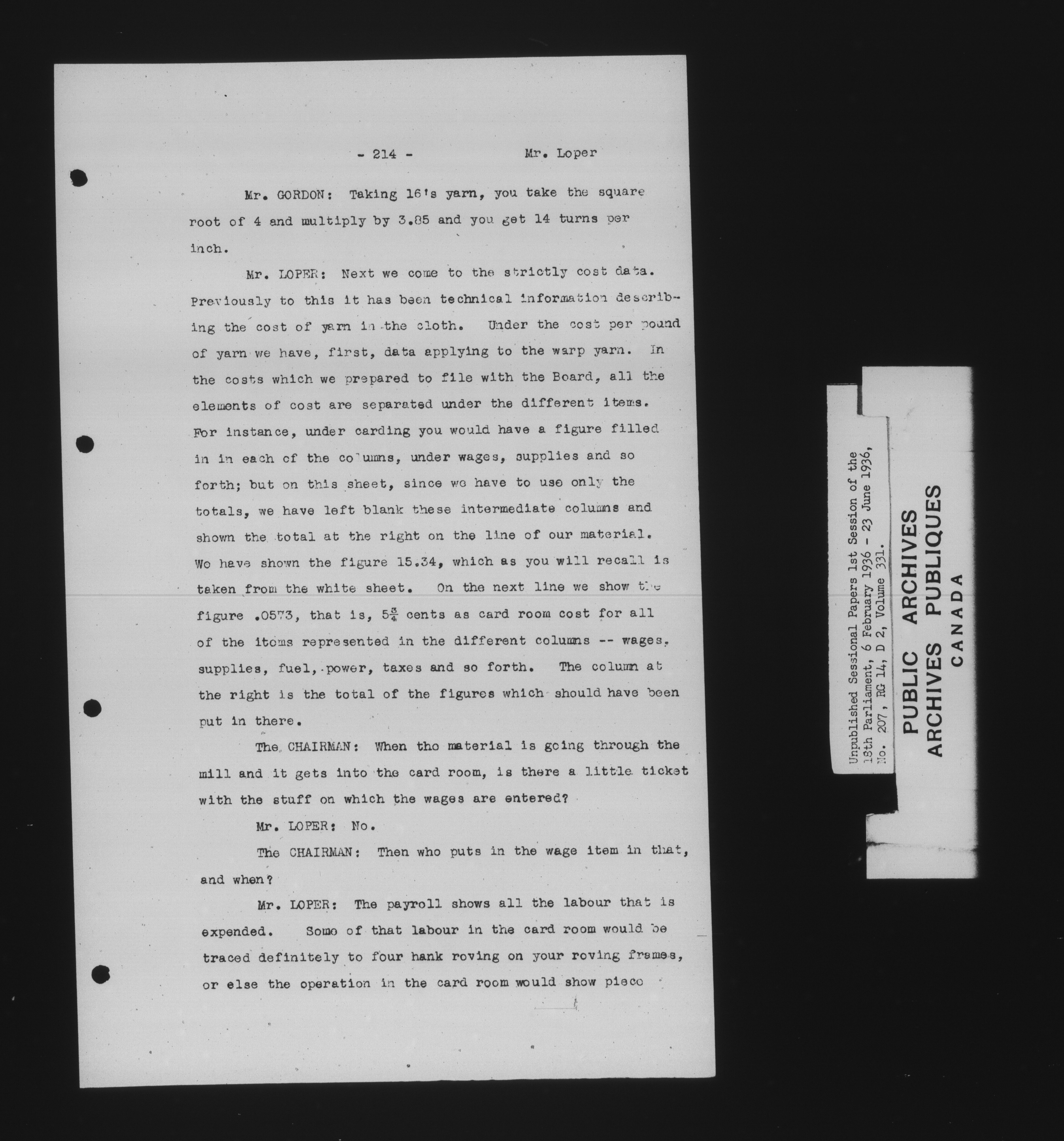 Unpublished sessional papers, 1st Session, 18th Parliament - 7871