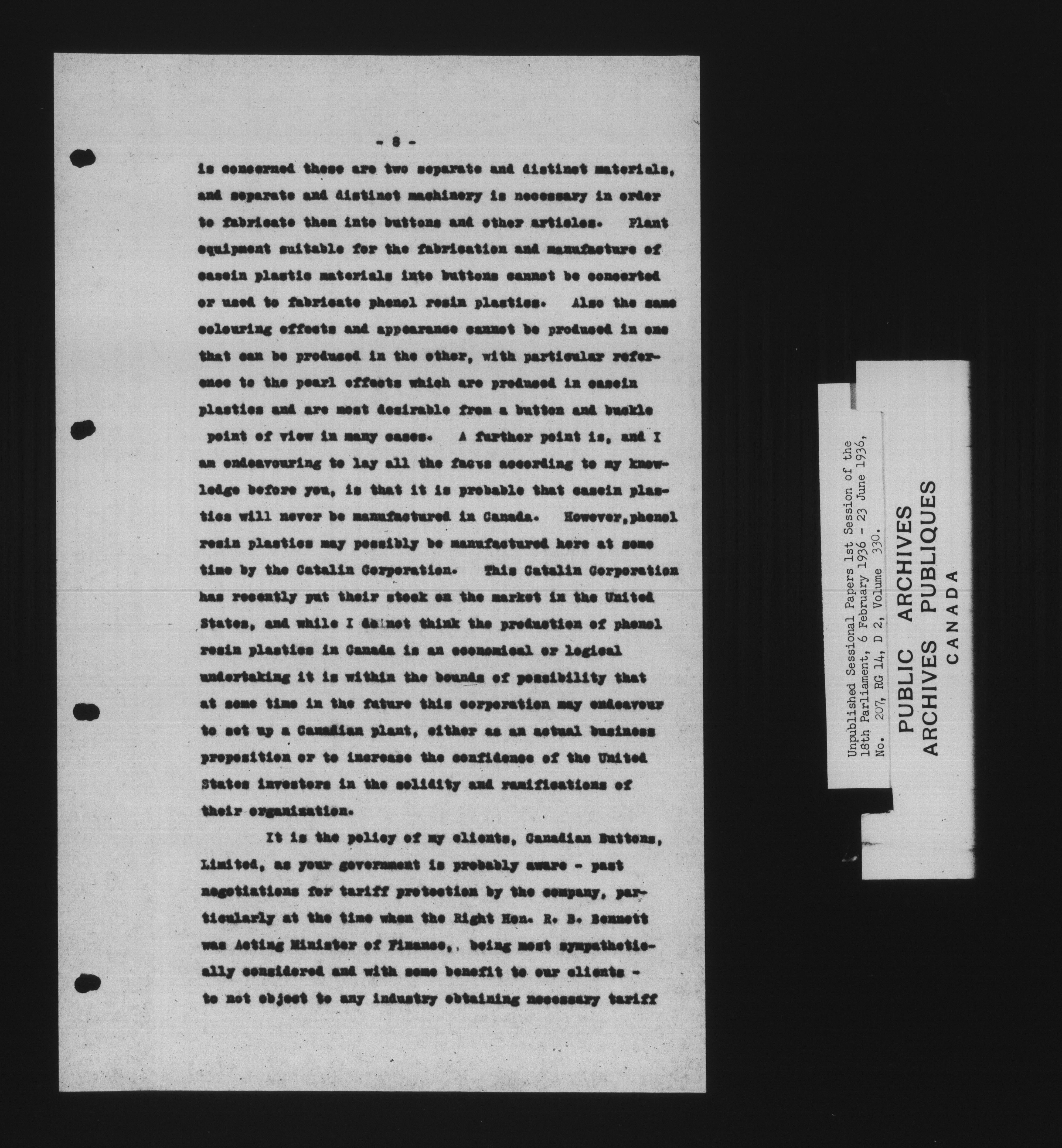 Unpublished sessional papers, 1st Session, 18th Parliament - 7871