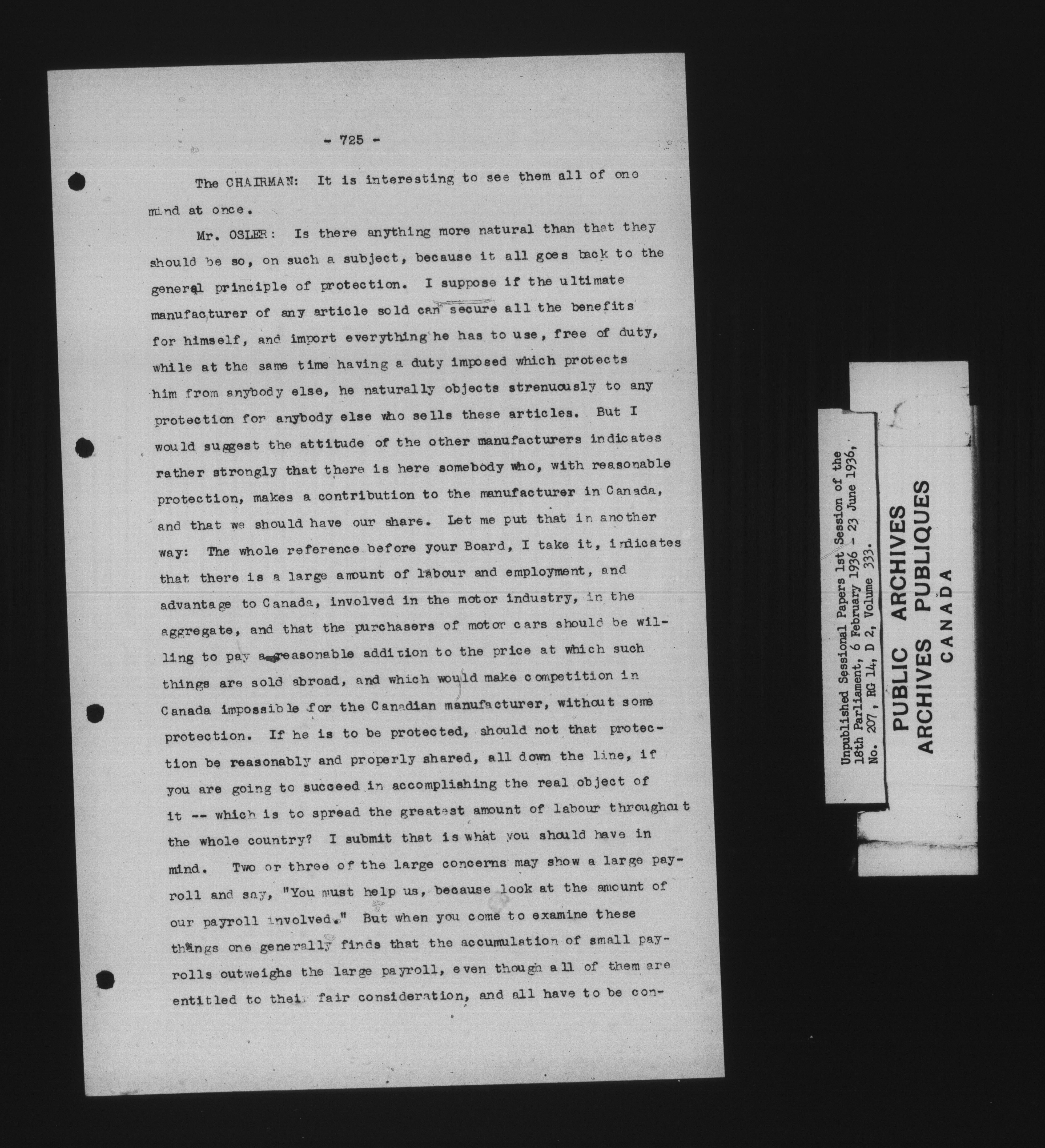 Unpublished sessional papers, 1st Session, 18th Parliament - 7874