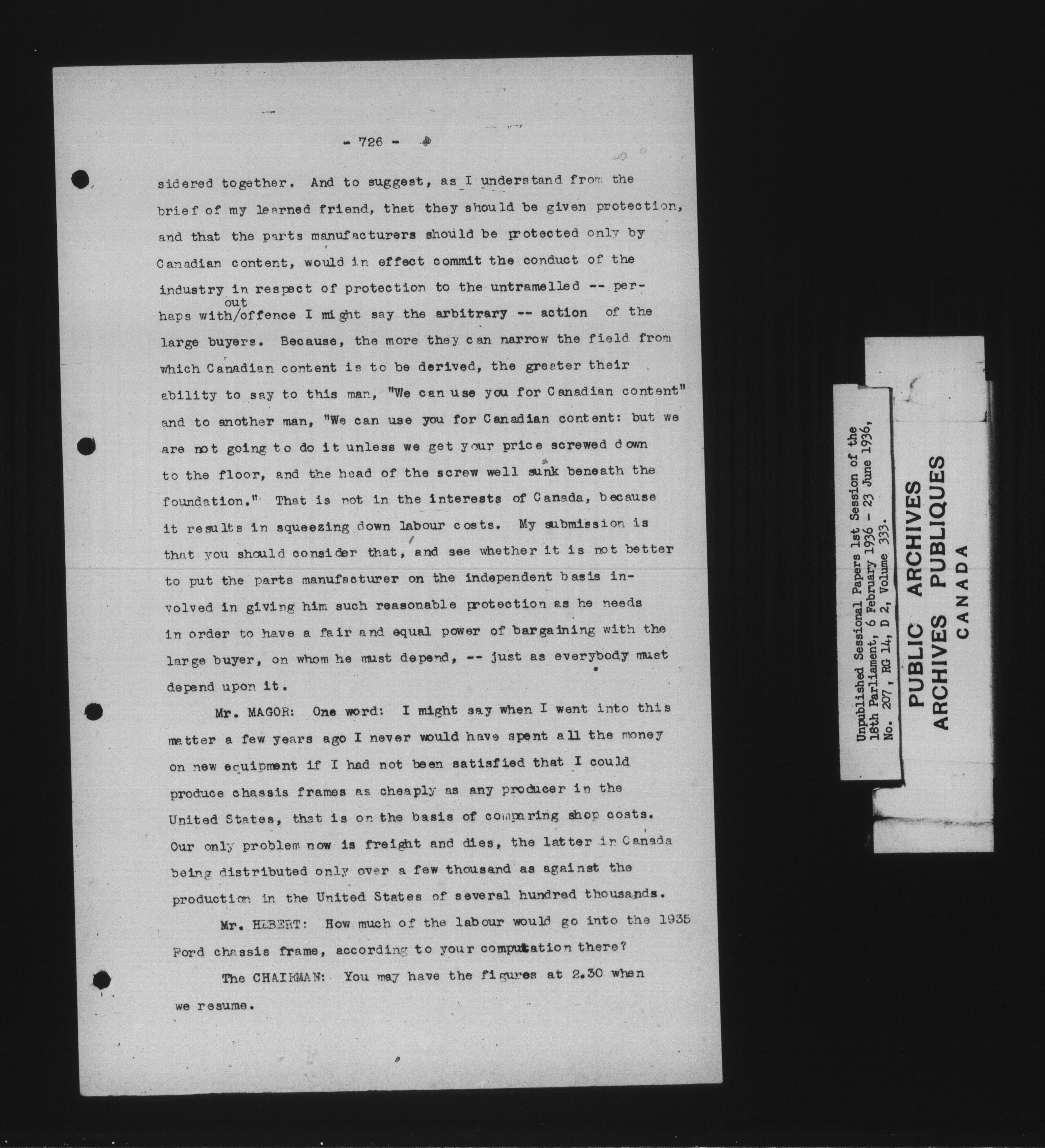 Unpublished sessional papers, 1st Session, 18th Parliament - 7874