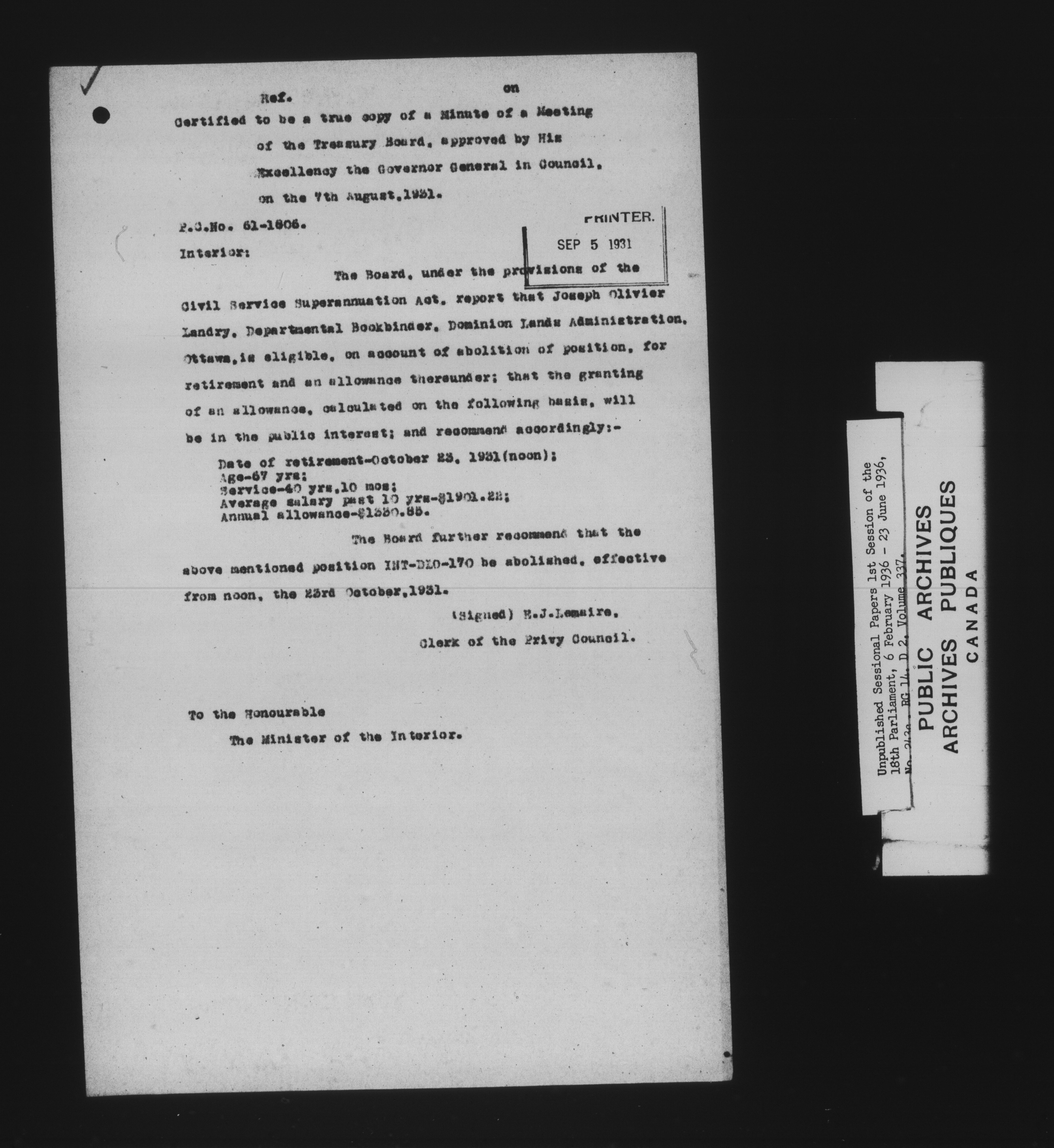 Unpublished sessional papers, 1st Session, 18th Parliament - 7875