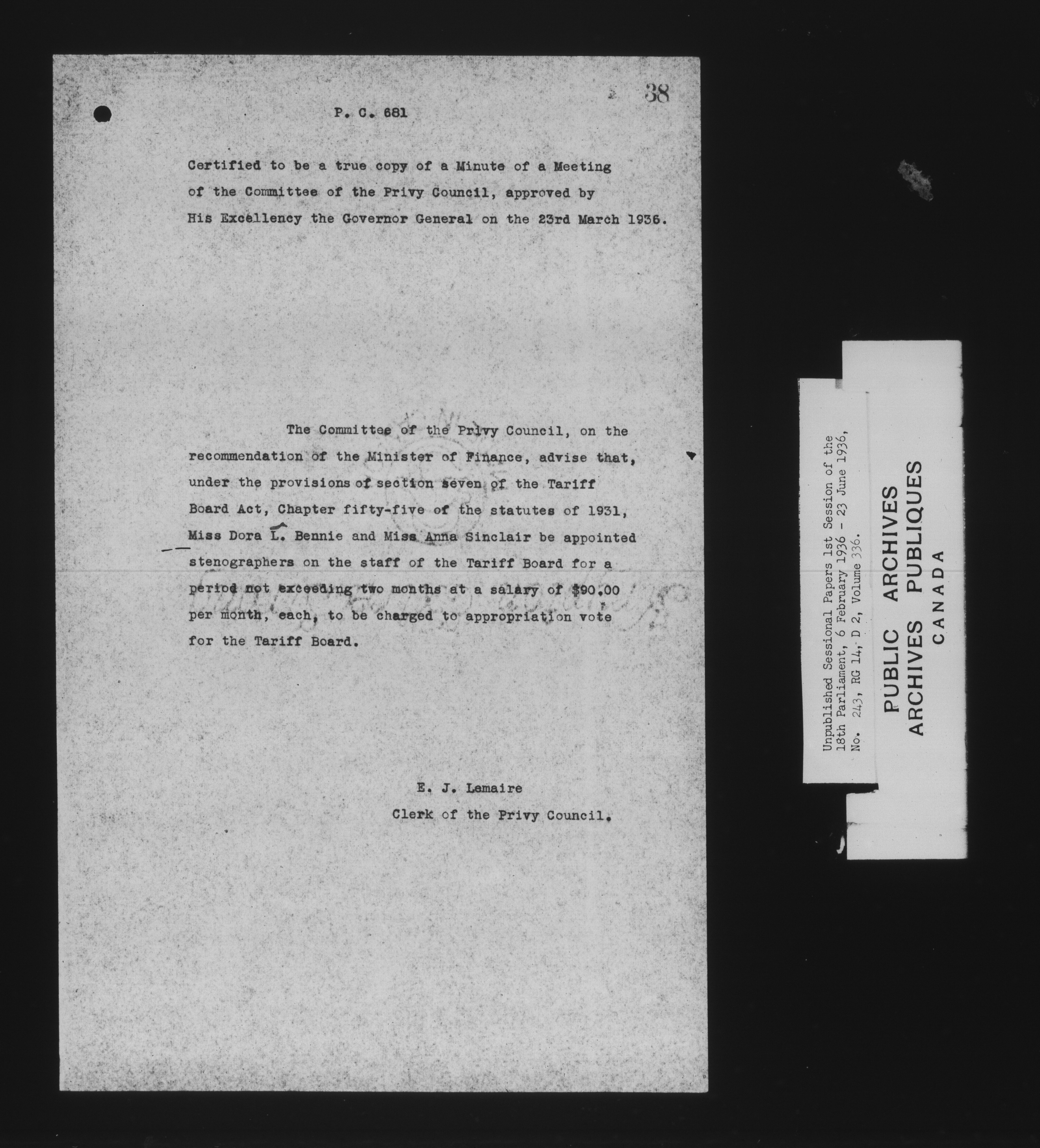 Unpublished sessional papers, 1st Session, 18th Parliament - 7875