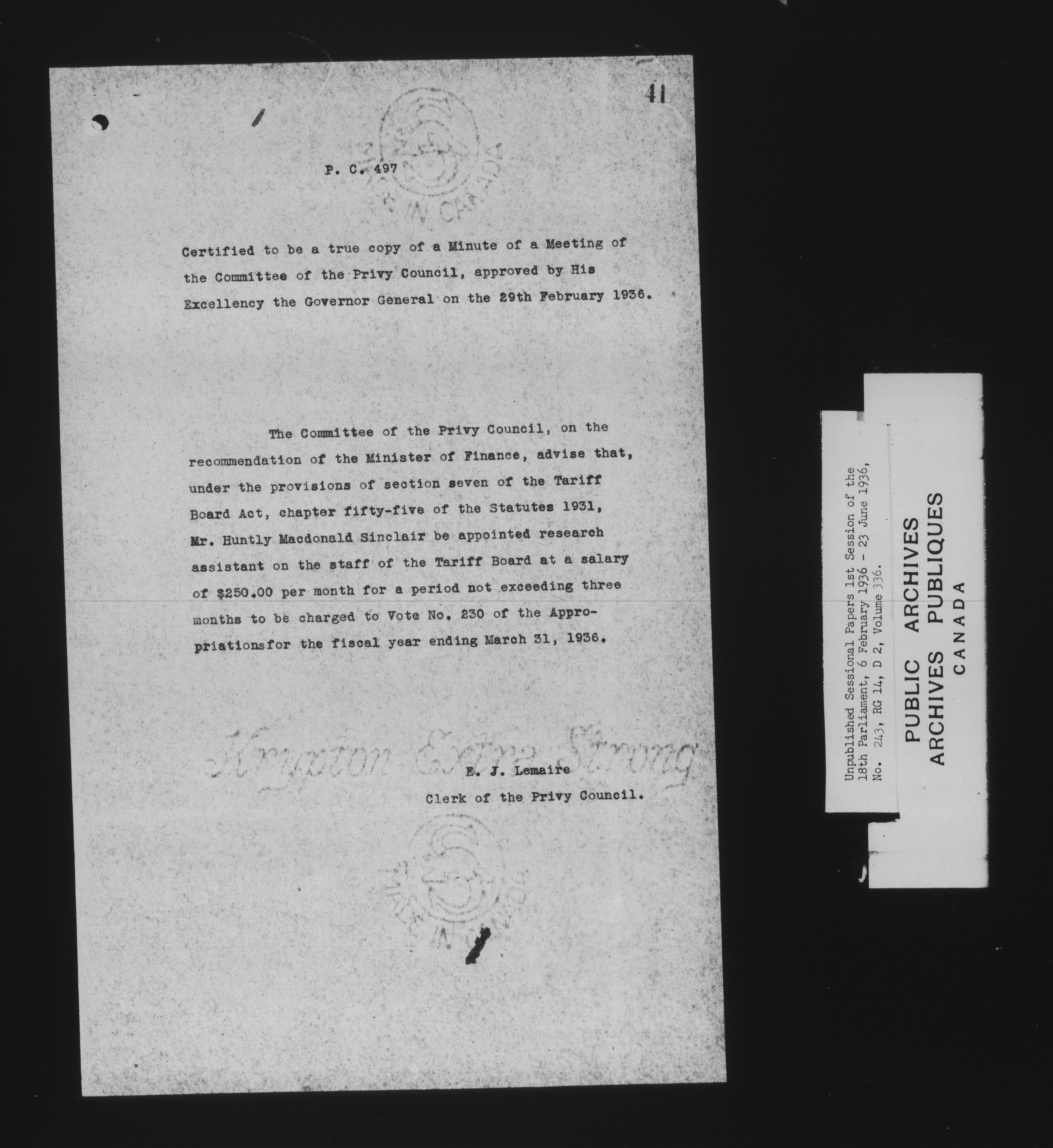 Unpublished sessional papers, 1st Session, 18th Parliament - 7875