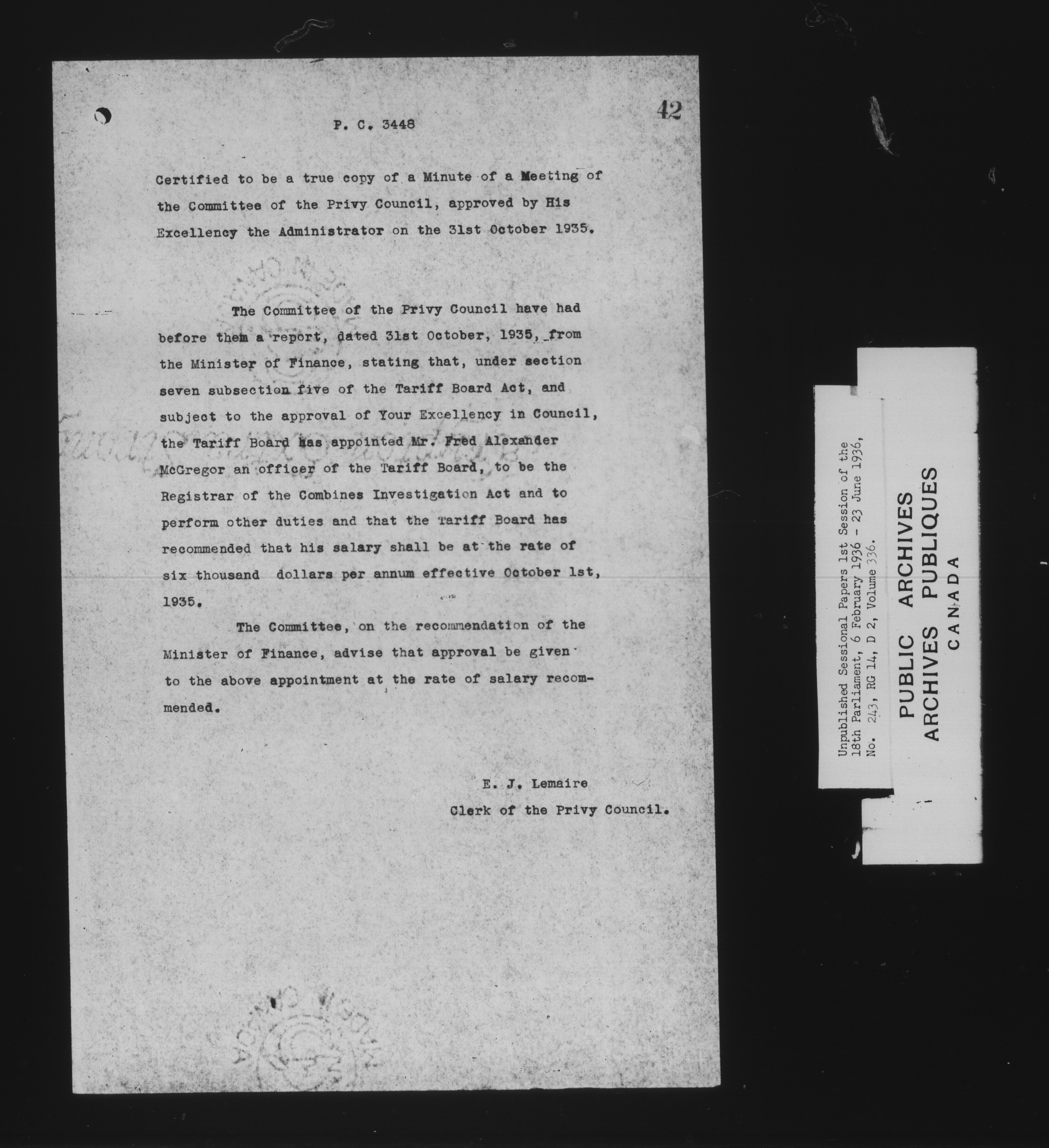 Unpublished sessional papers, 1st Session, 18th Parliament - 7875