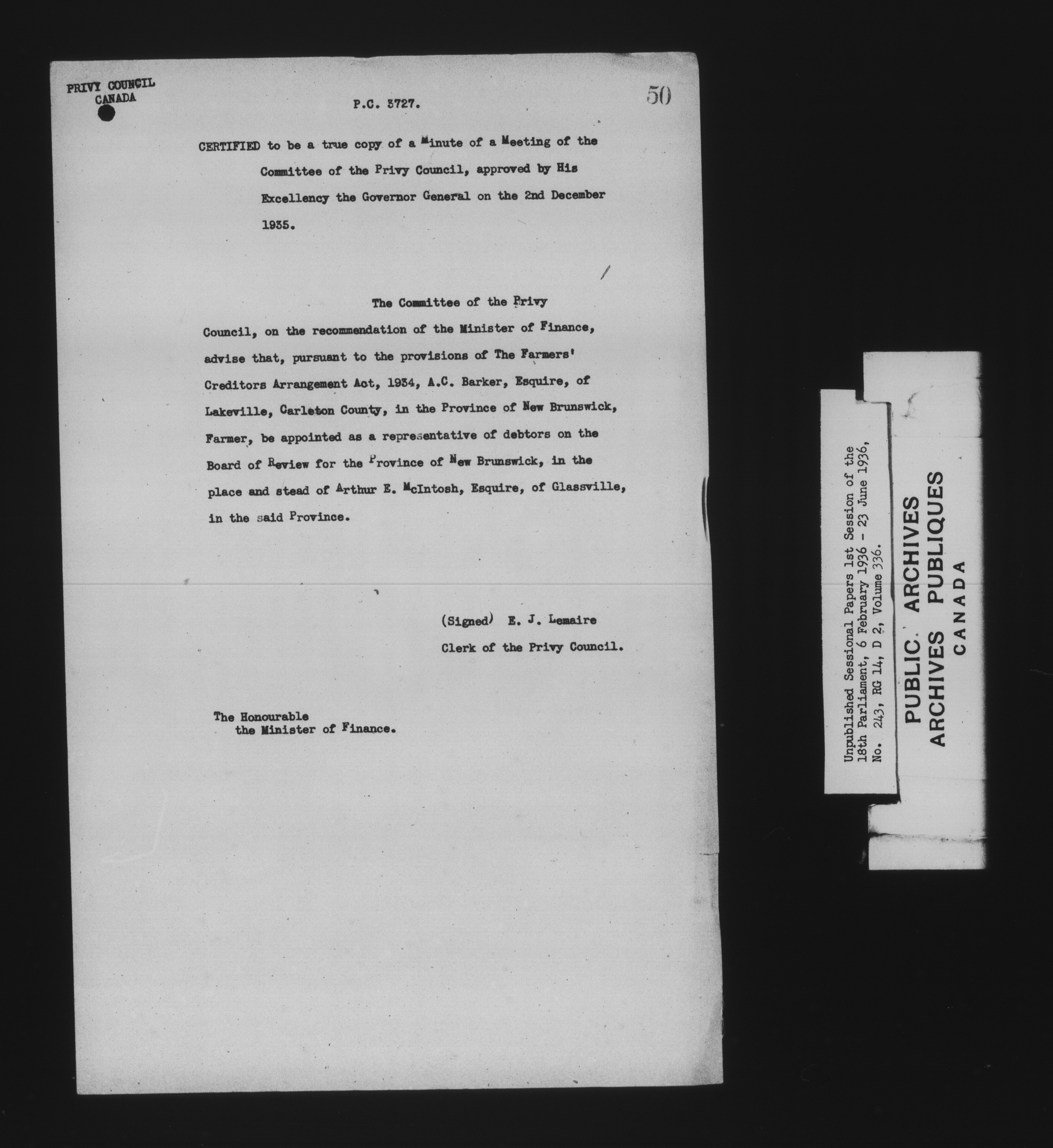 Unpublished sessional papers, 1st Session, 18th Parliament - 7875