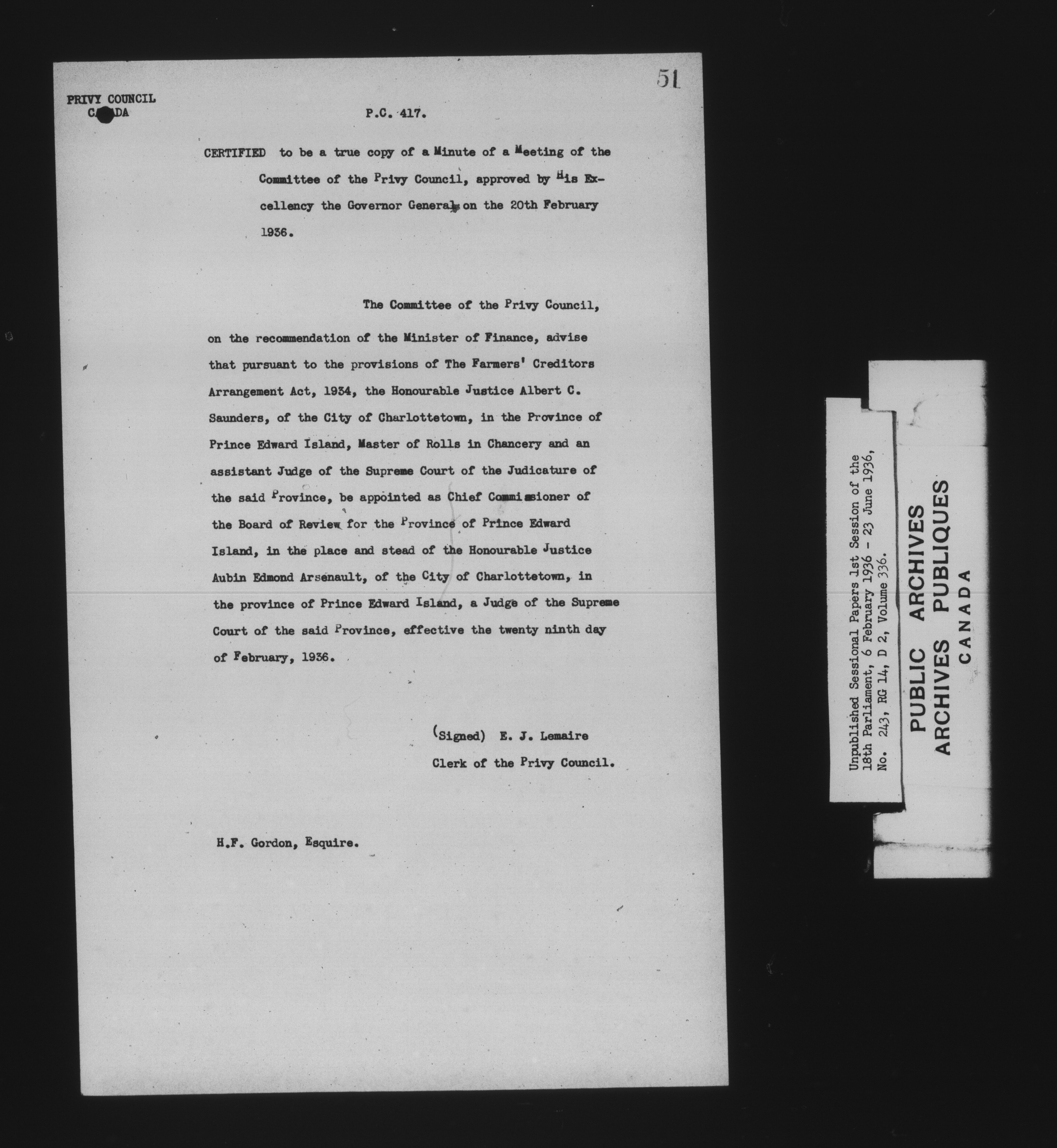 Unpublished sessional papers, 1st Session, 18th Parliament - 7875