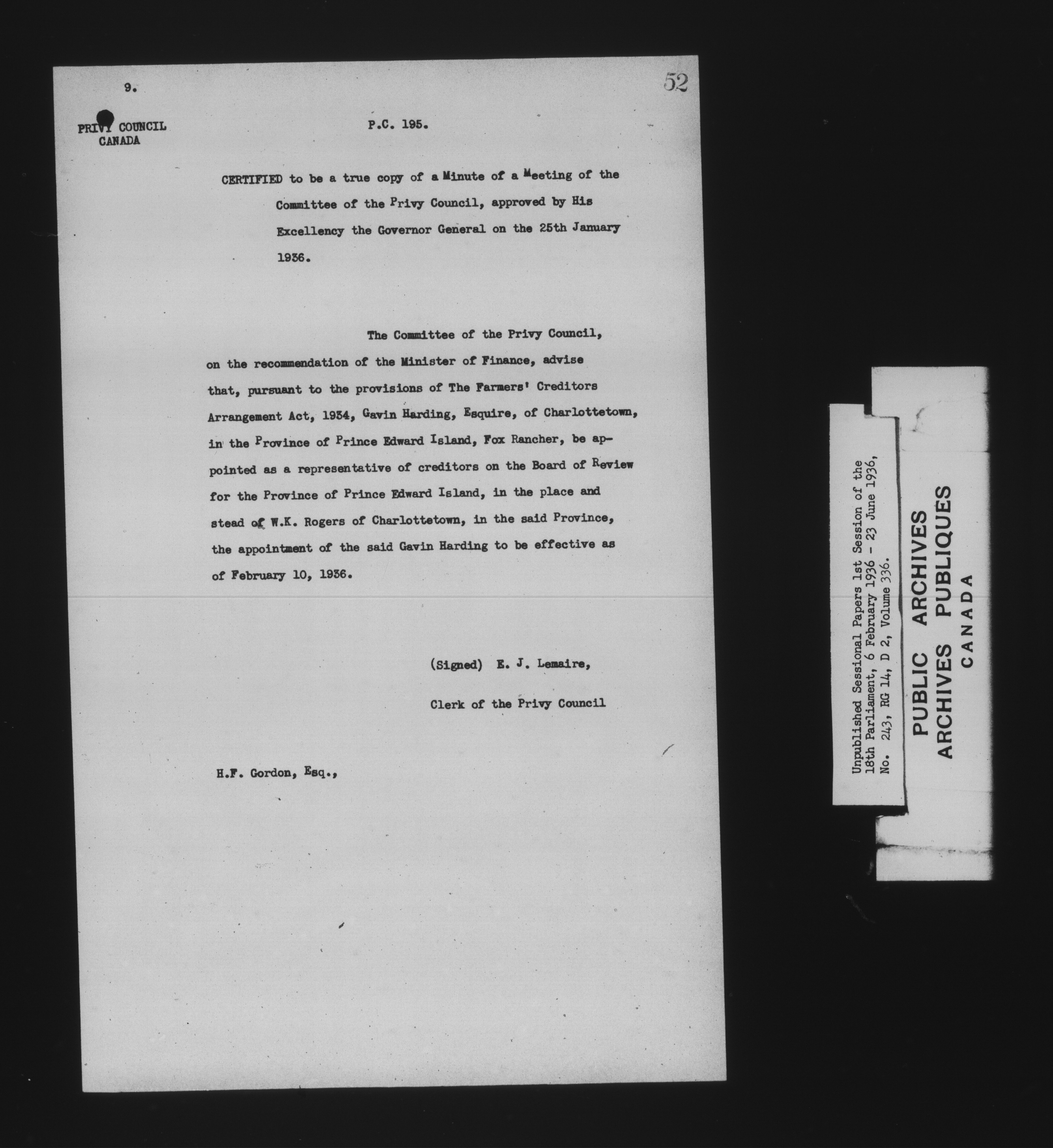 Unpublished sessional papers, 1st Session, 18th Parliament - 7875