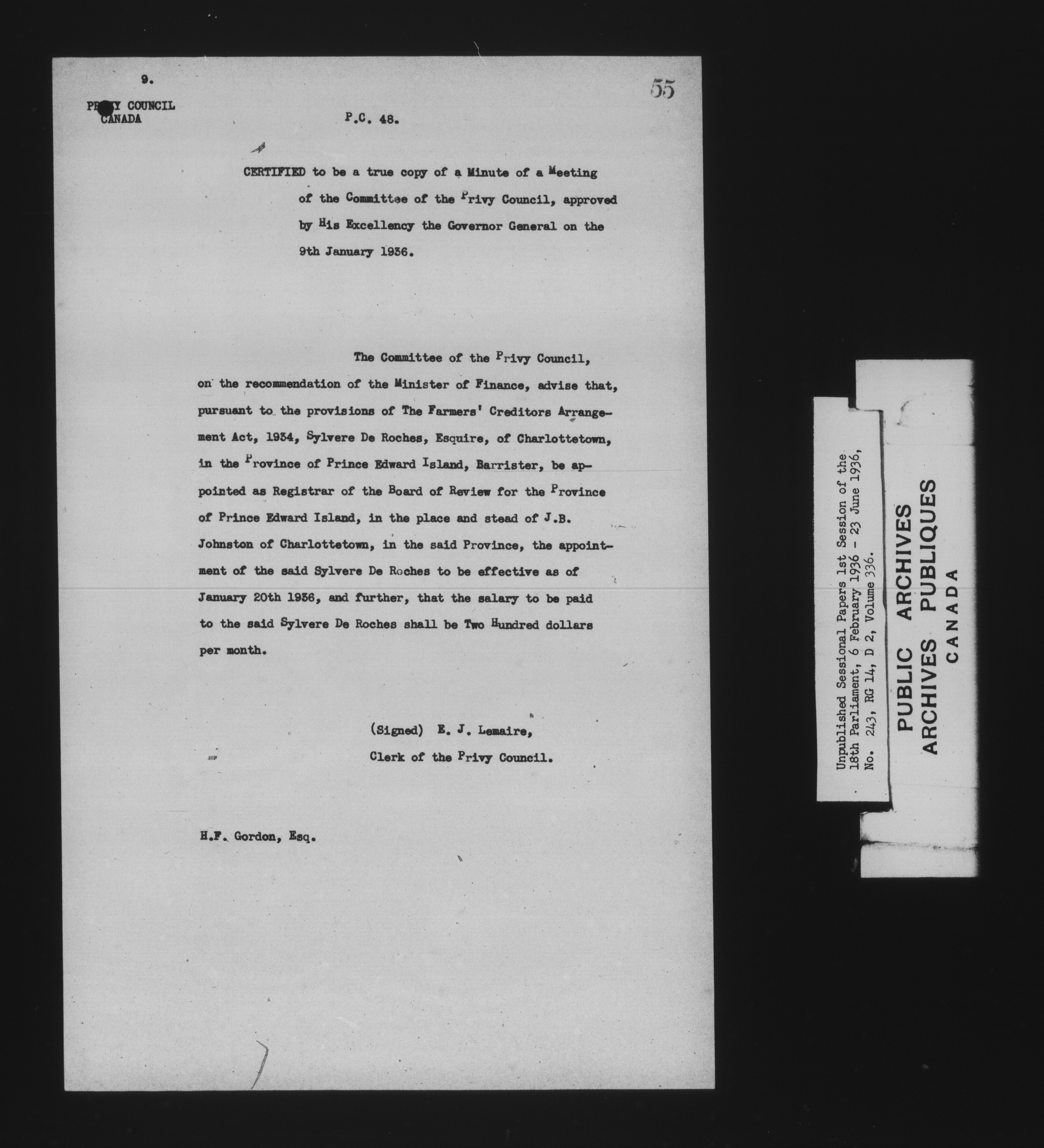 Unpublished sessional papers, 1st Session, 18th Parliament - 7875