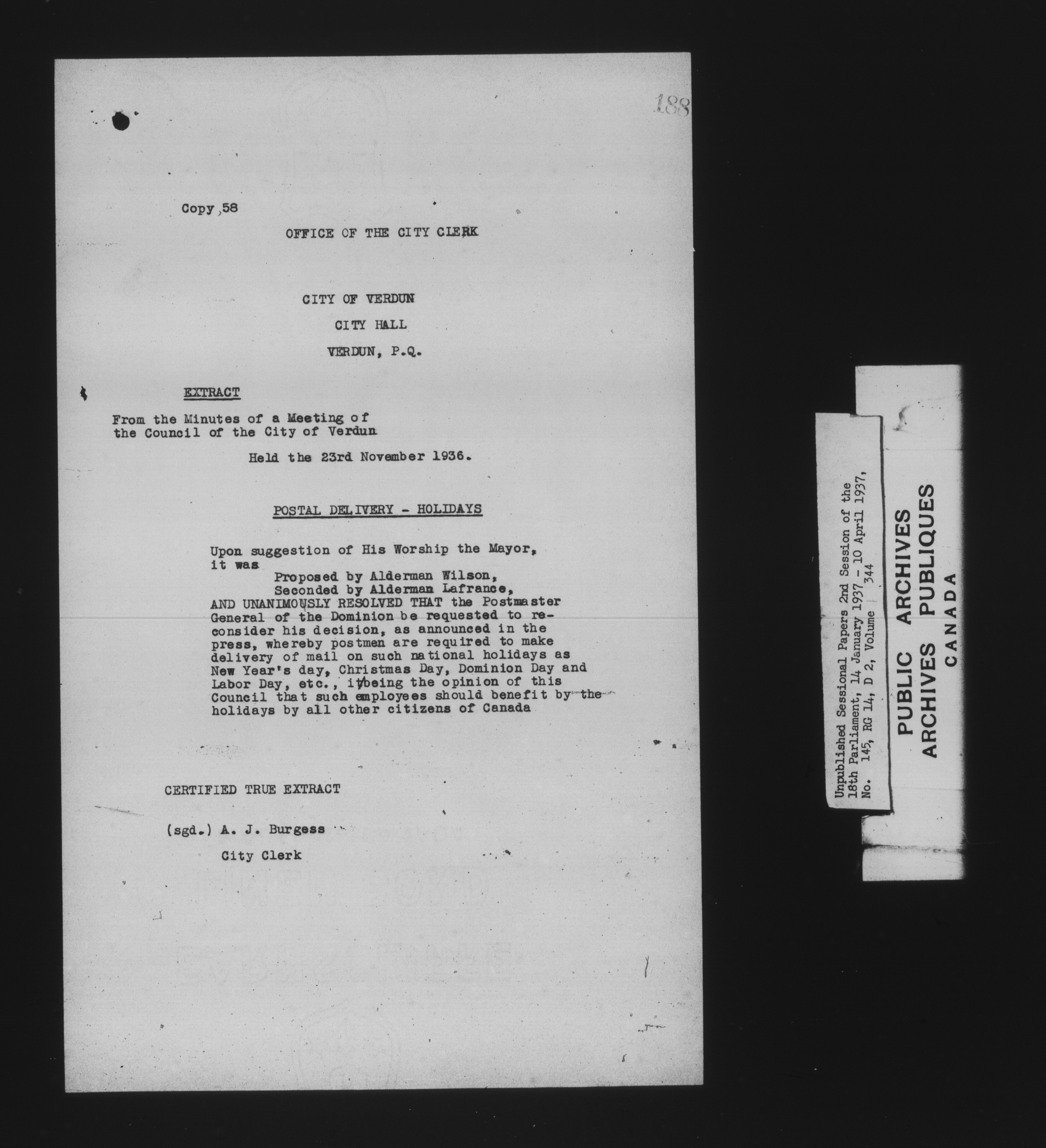 Unpublished sessional papers, 2nd Session, 18th Parliament - 7878