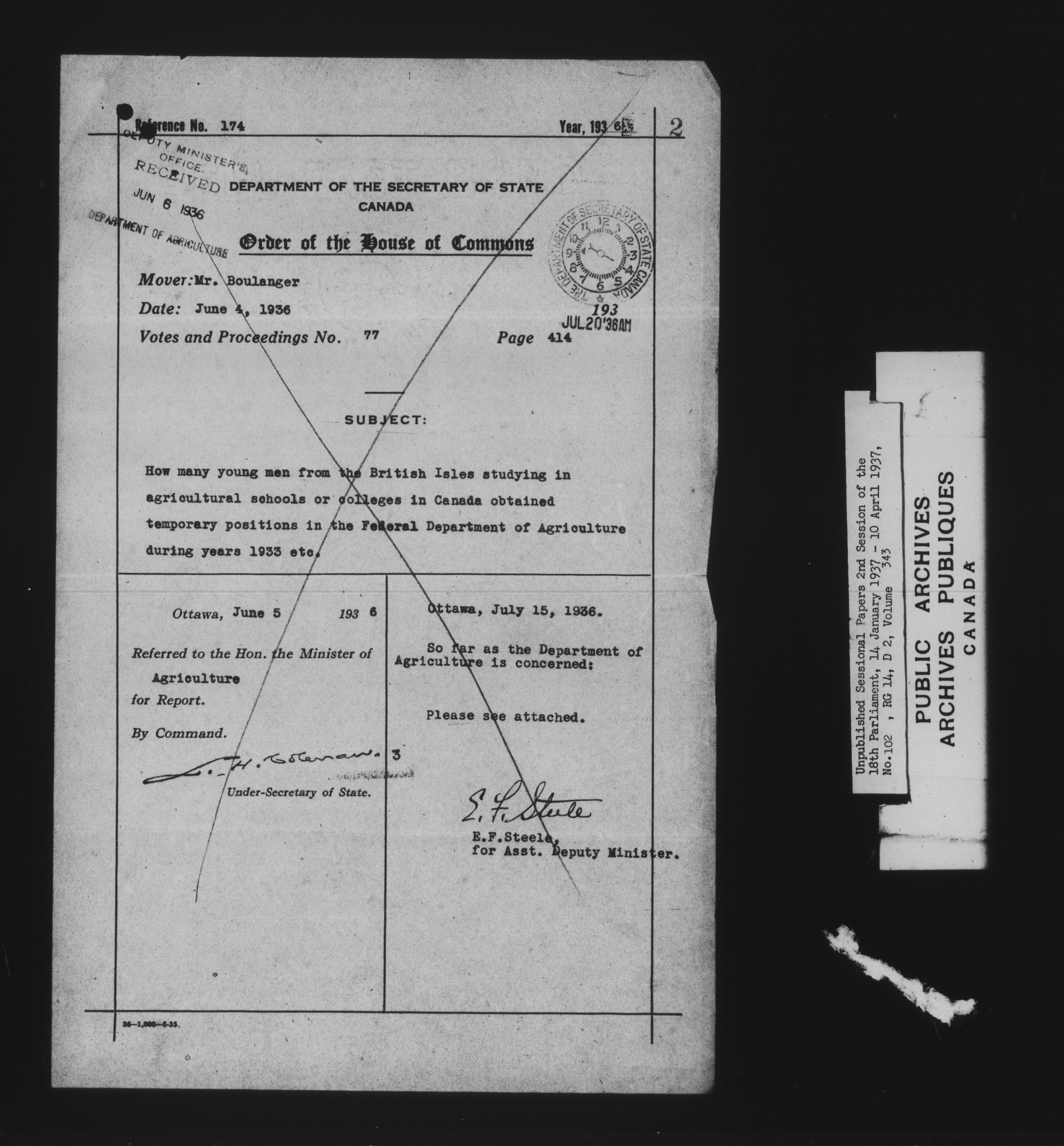 Unpublished sessional papers, 2nd Session, 18th Parliament - 7878
